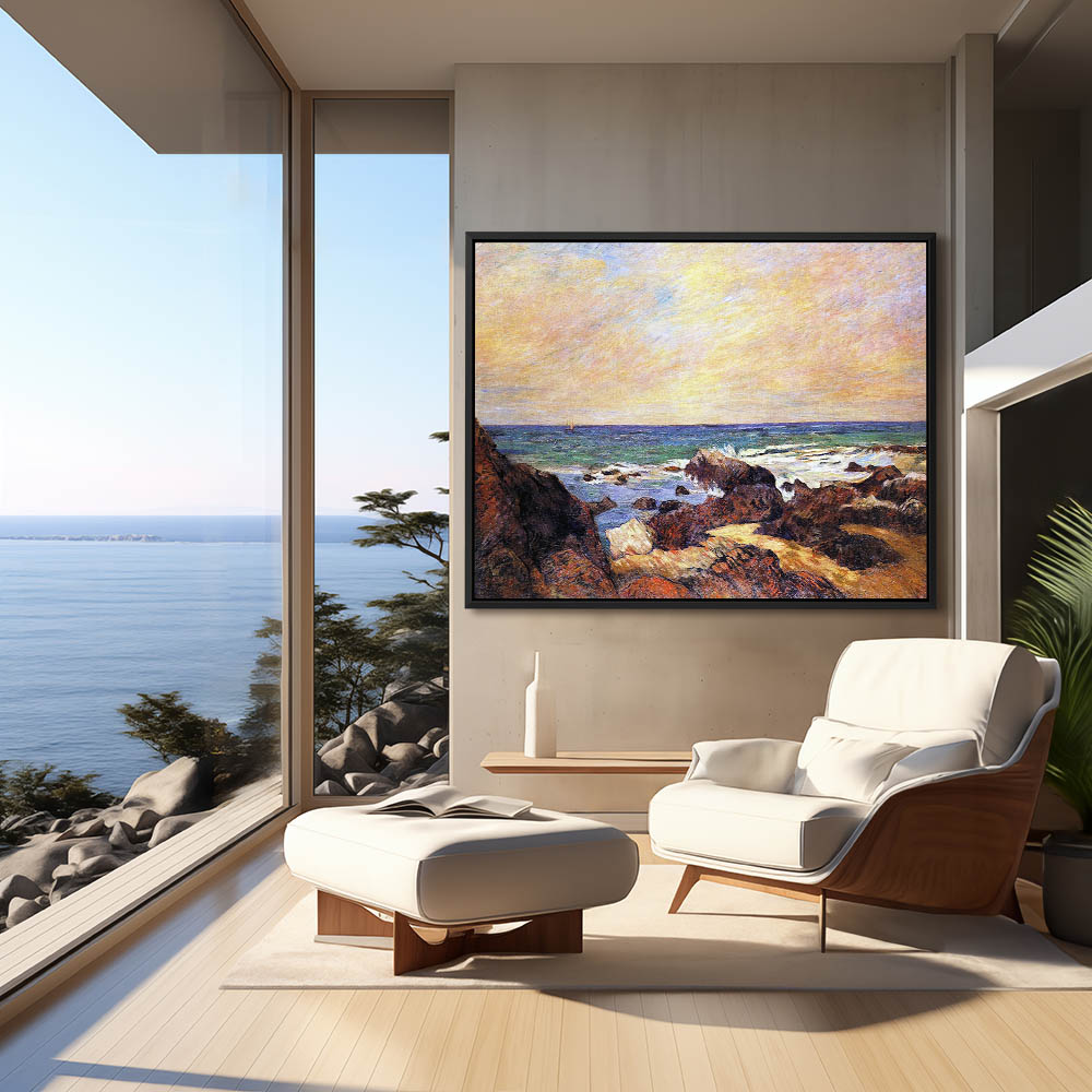 Vintage Costline Seascape Painting of Rocks on the Coast
