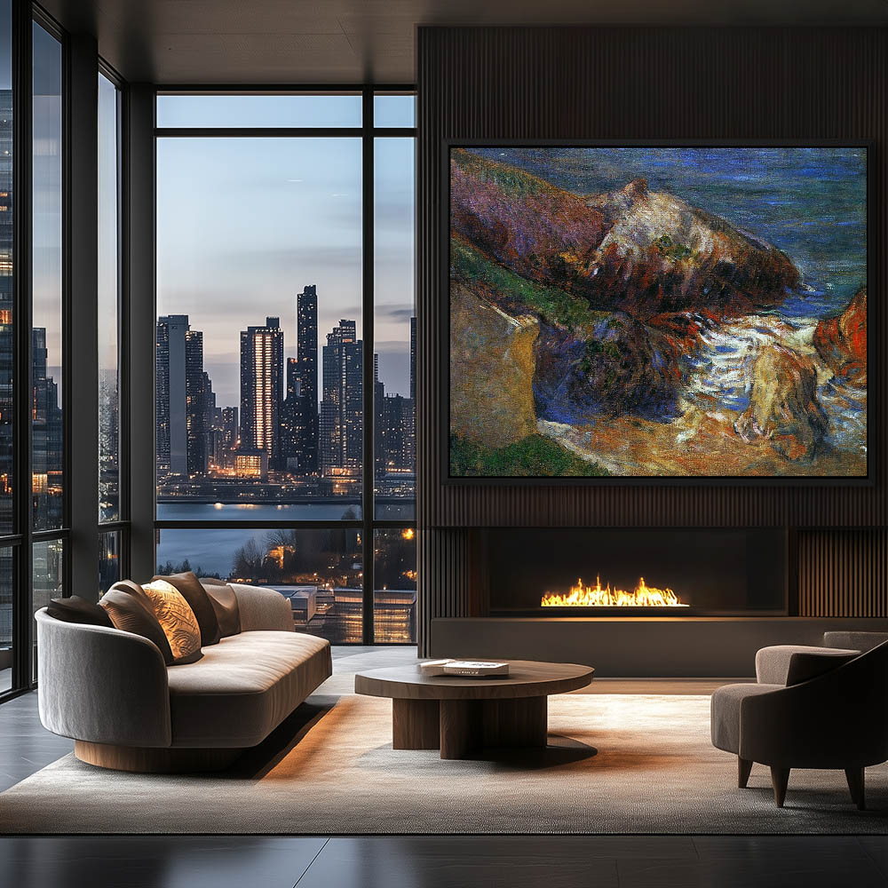 Vintage Seascape Painting with Rocks on the Beach