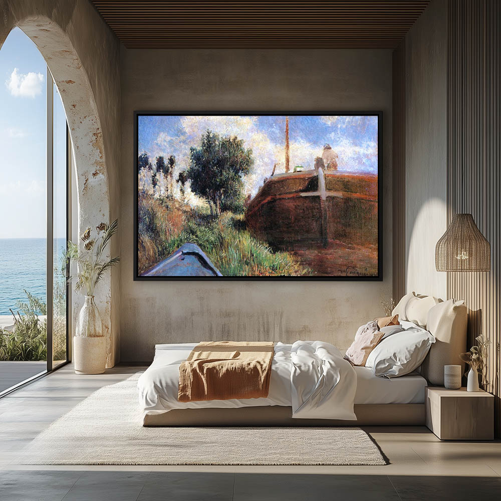 Vintage Landscape Painting with a Barge