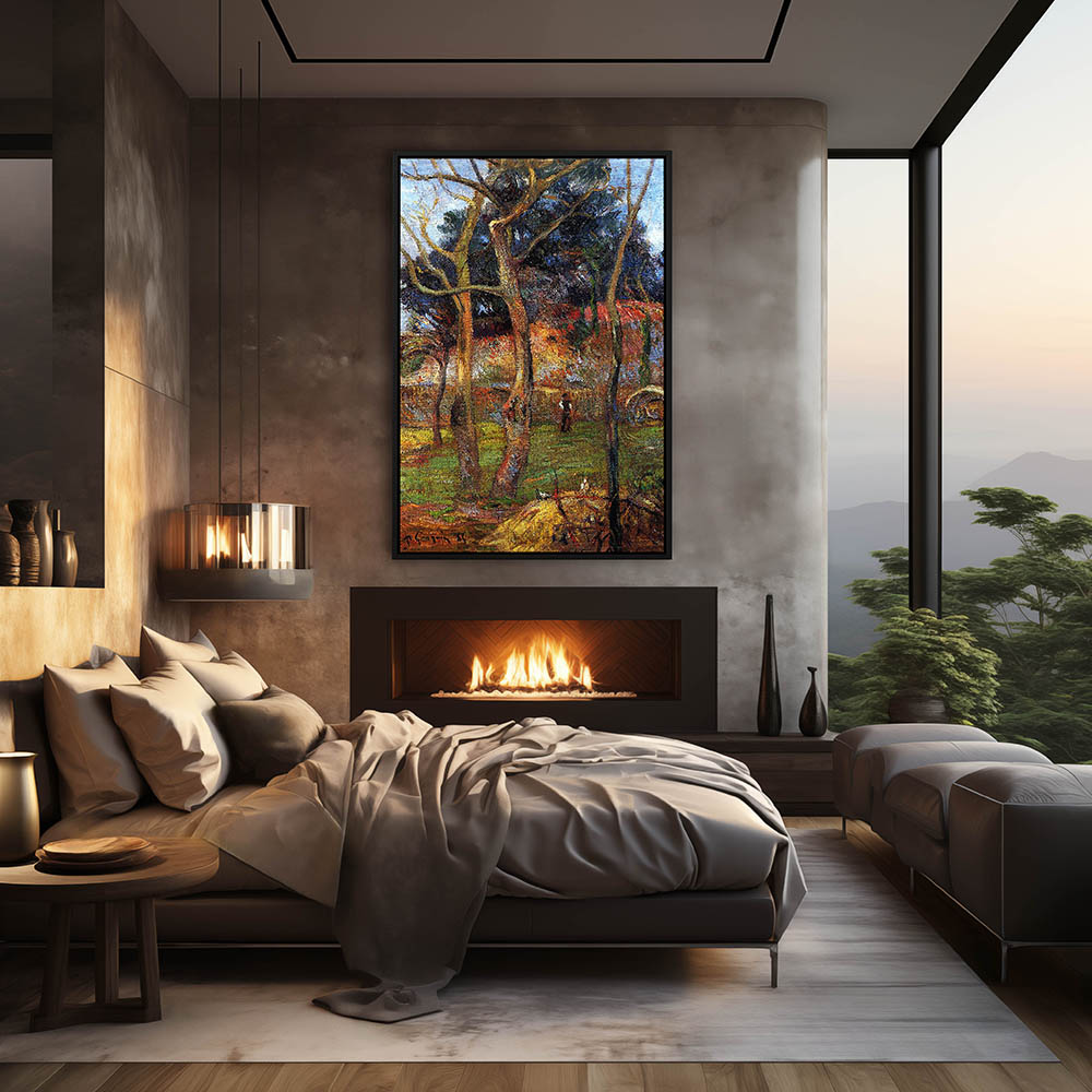 Vintage Landscape Painting of Trees without the Leaves on the Tree