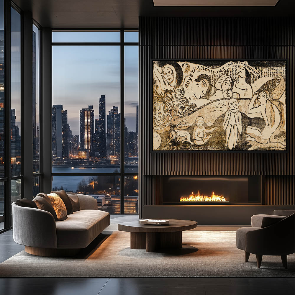 Vintage Figurative Painting with Nude Natives