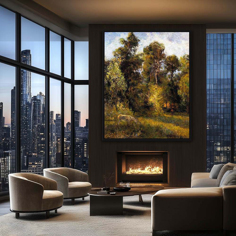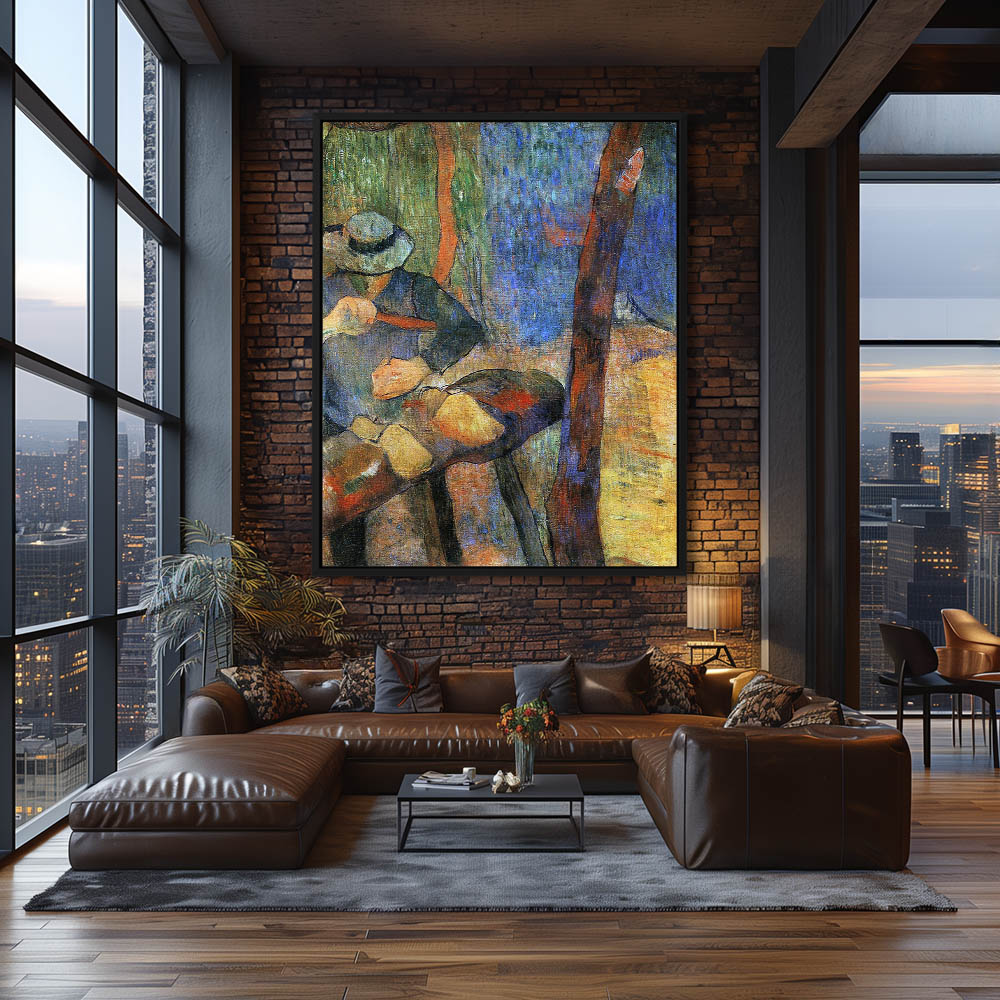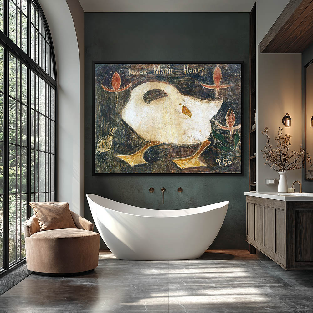 Vintage Abstract Figurative Painting with Two Nude Natives