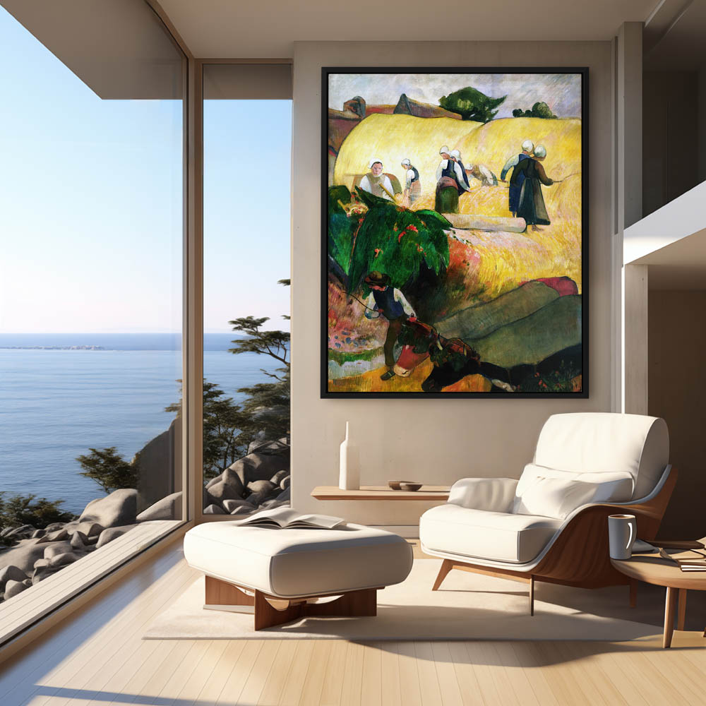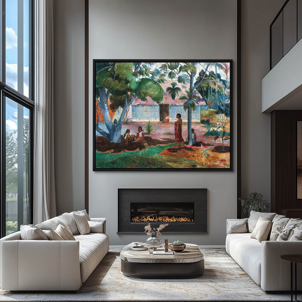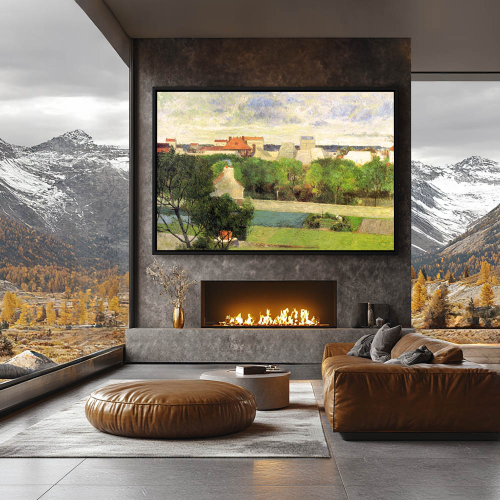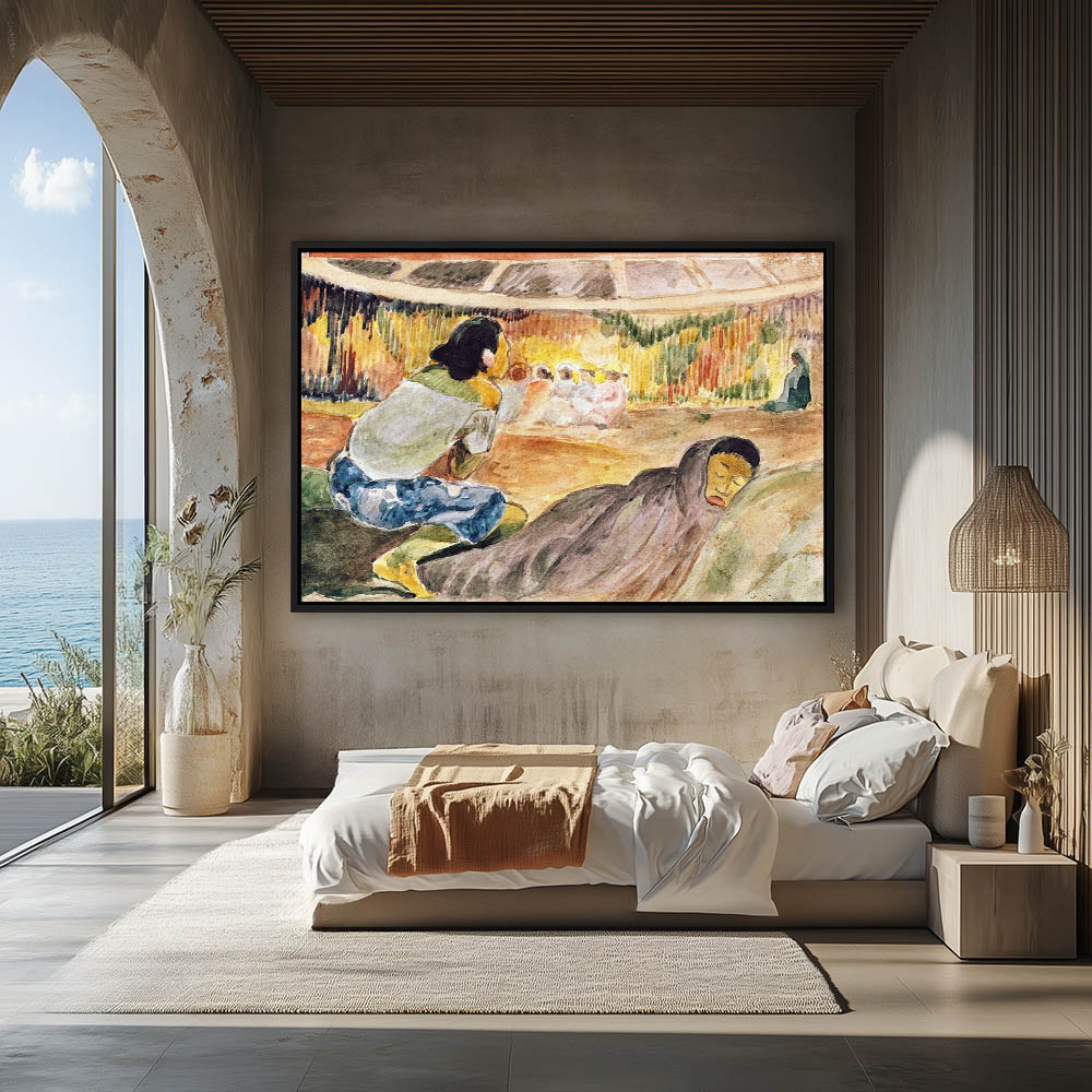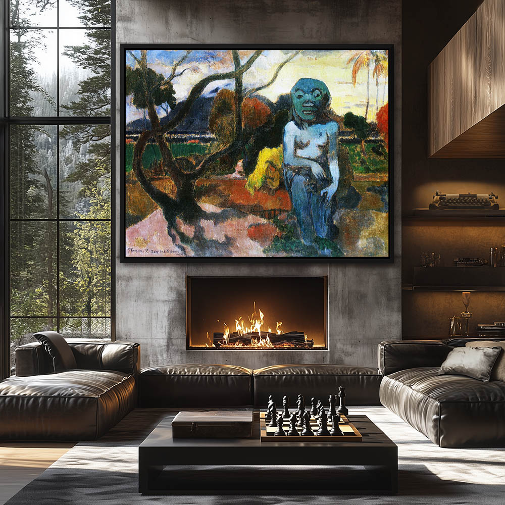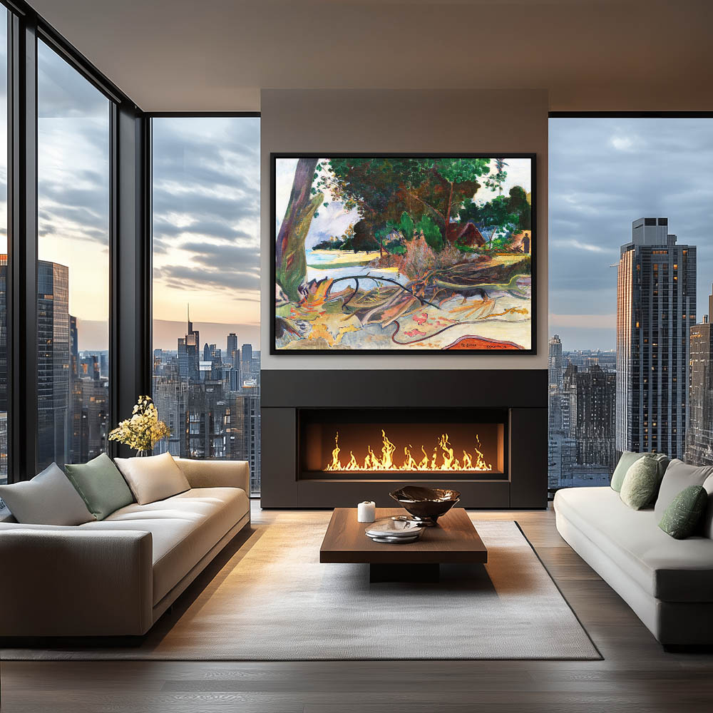 Vintage Abstract Landscape Painting with a Nude Woman and a Dog