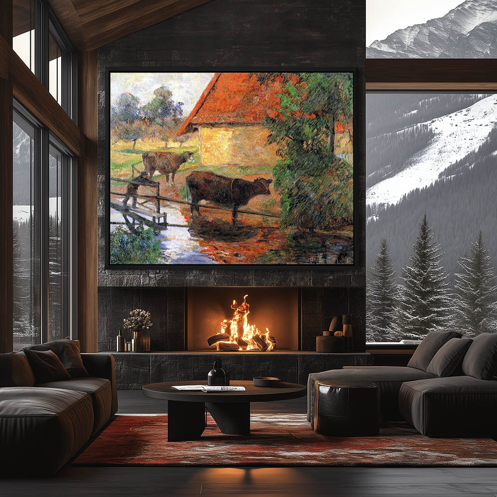 Vintage Farm Landscape Painting with Cows