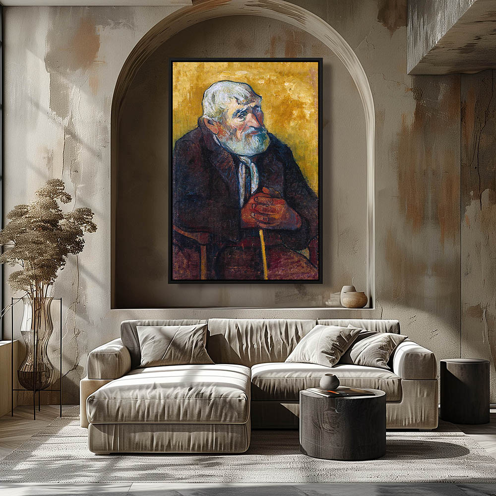 Vintage Portrait Painting of a Man sitting with a Cane