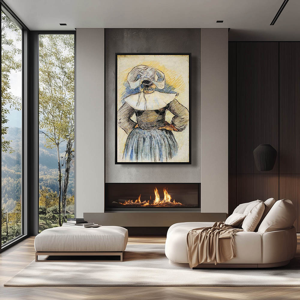 Vintage Landscape Painting with a Boy on a Path by the Creek