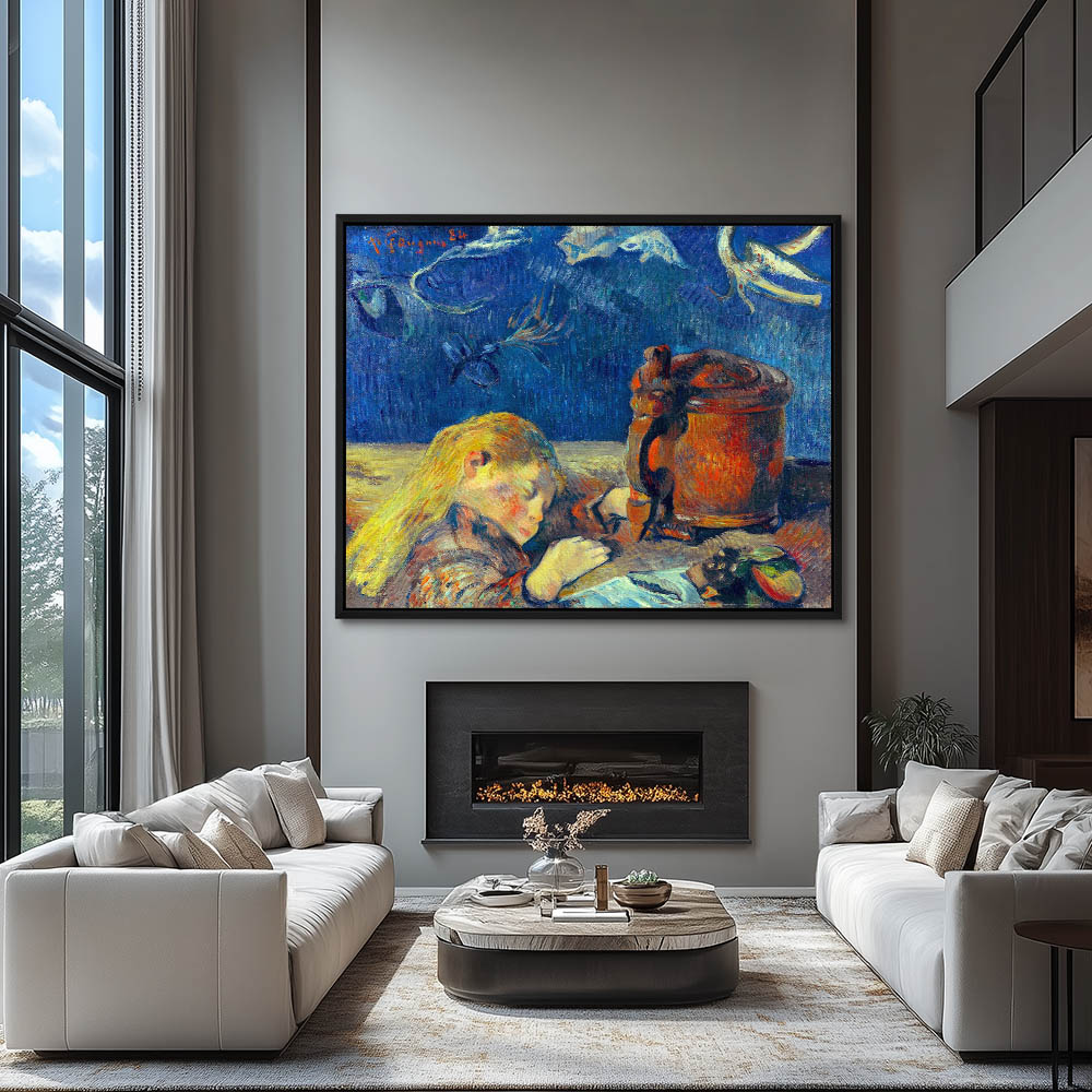 Vintage Figurative Painting of a Girl Sleeoing at a Table