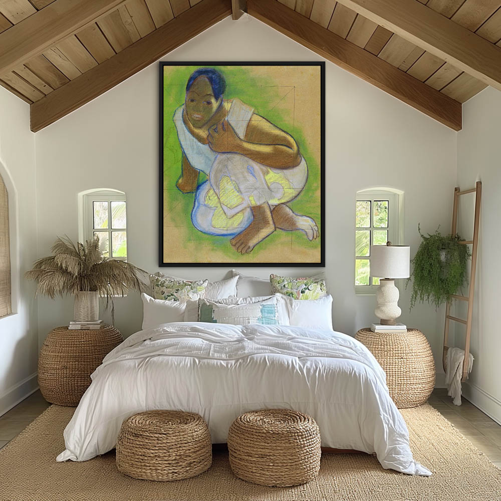 Vintage Figurative Painting with Figures Resting in a Landscape