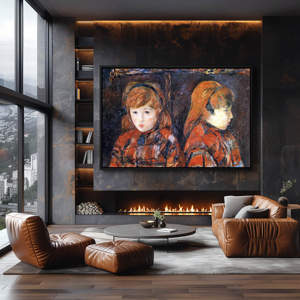 Vintage Double Portrait Painting of a Young Girl
