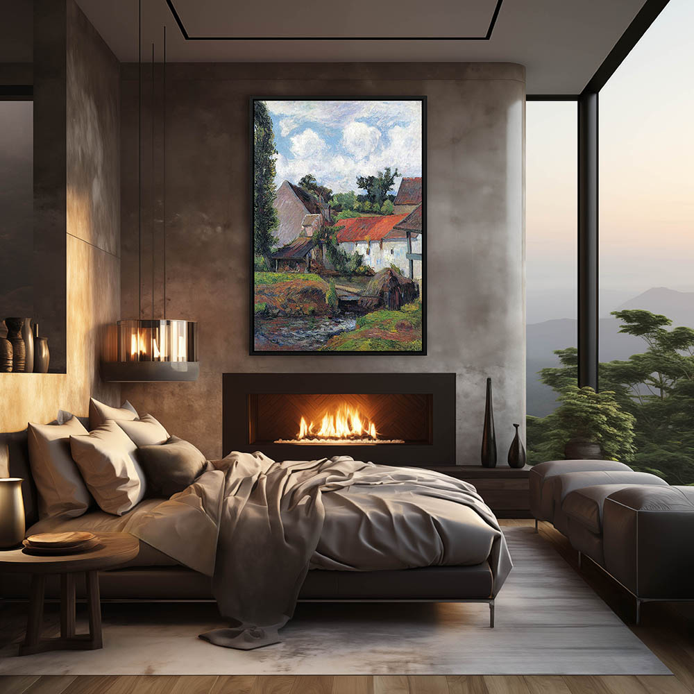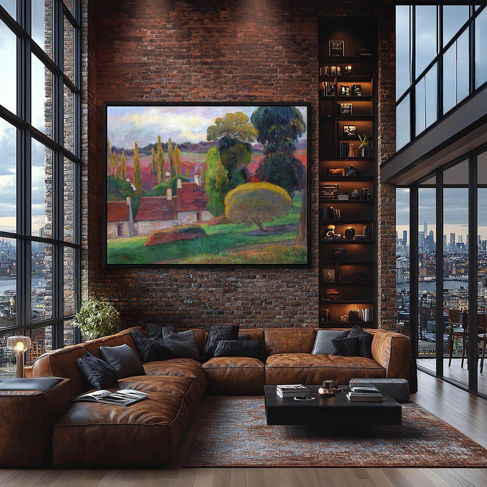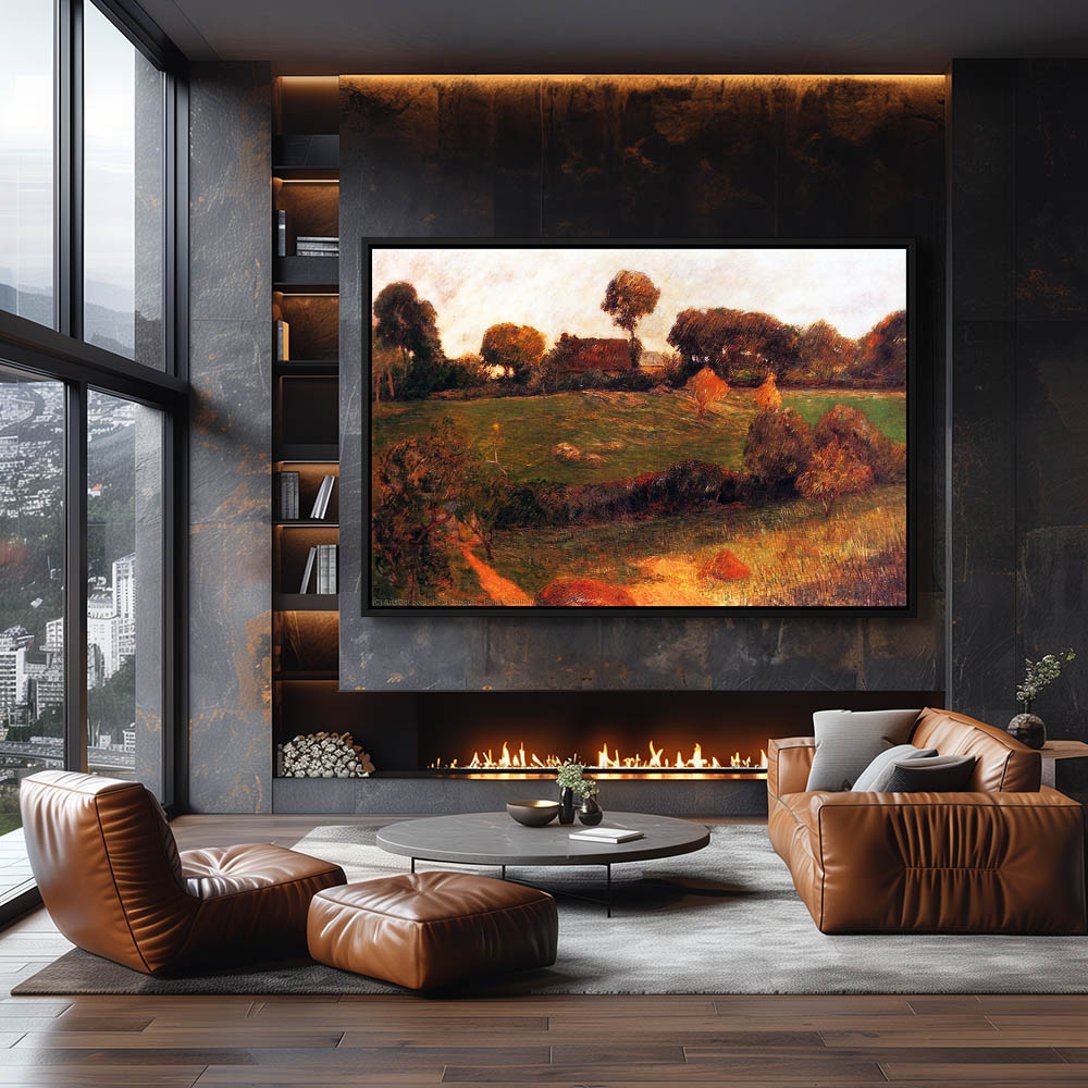 Vintage Farm Landscape Painting with Haystacks in Brittany