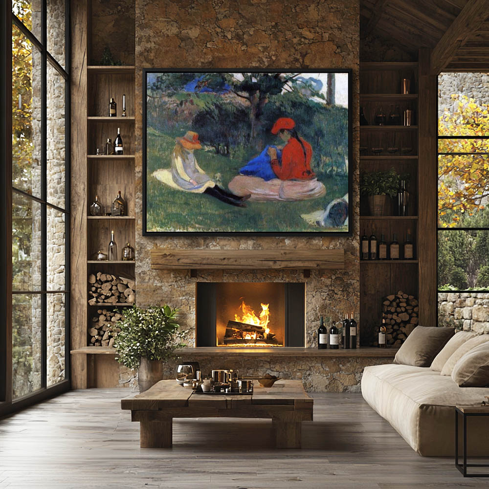 Vintage Figurative Painting of a Woman and child in the Grass