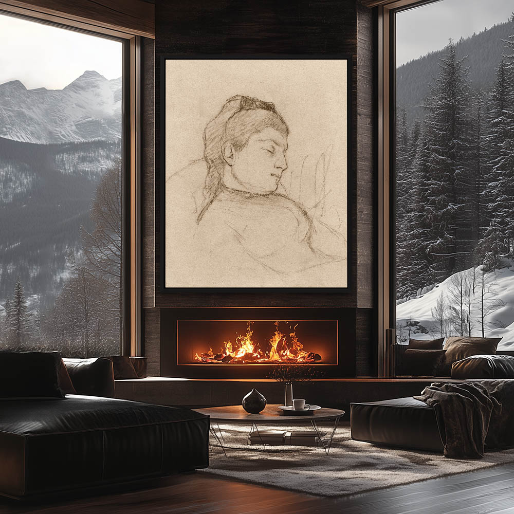 Vintage Figurative Drawing of a Sleeping Woman