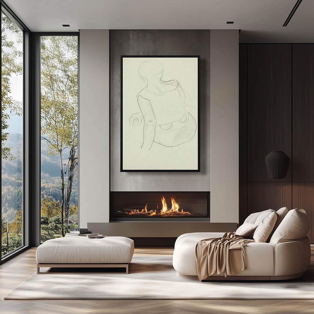 Vintage Figurative Drawing of a Woman from Behind