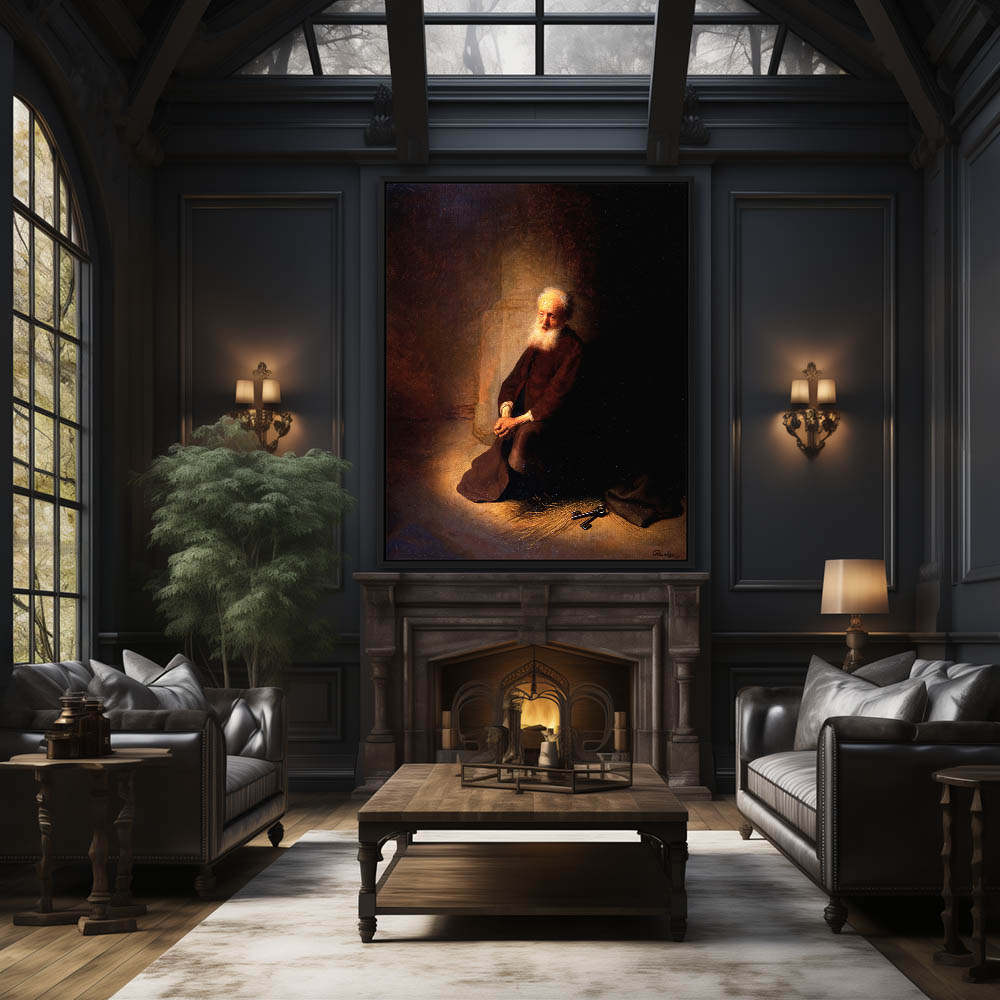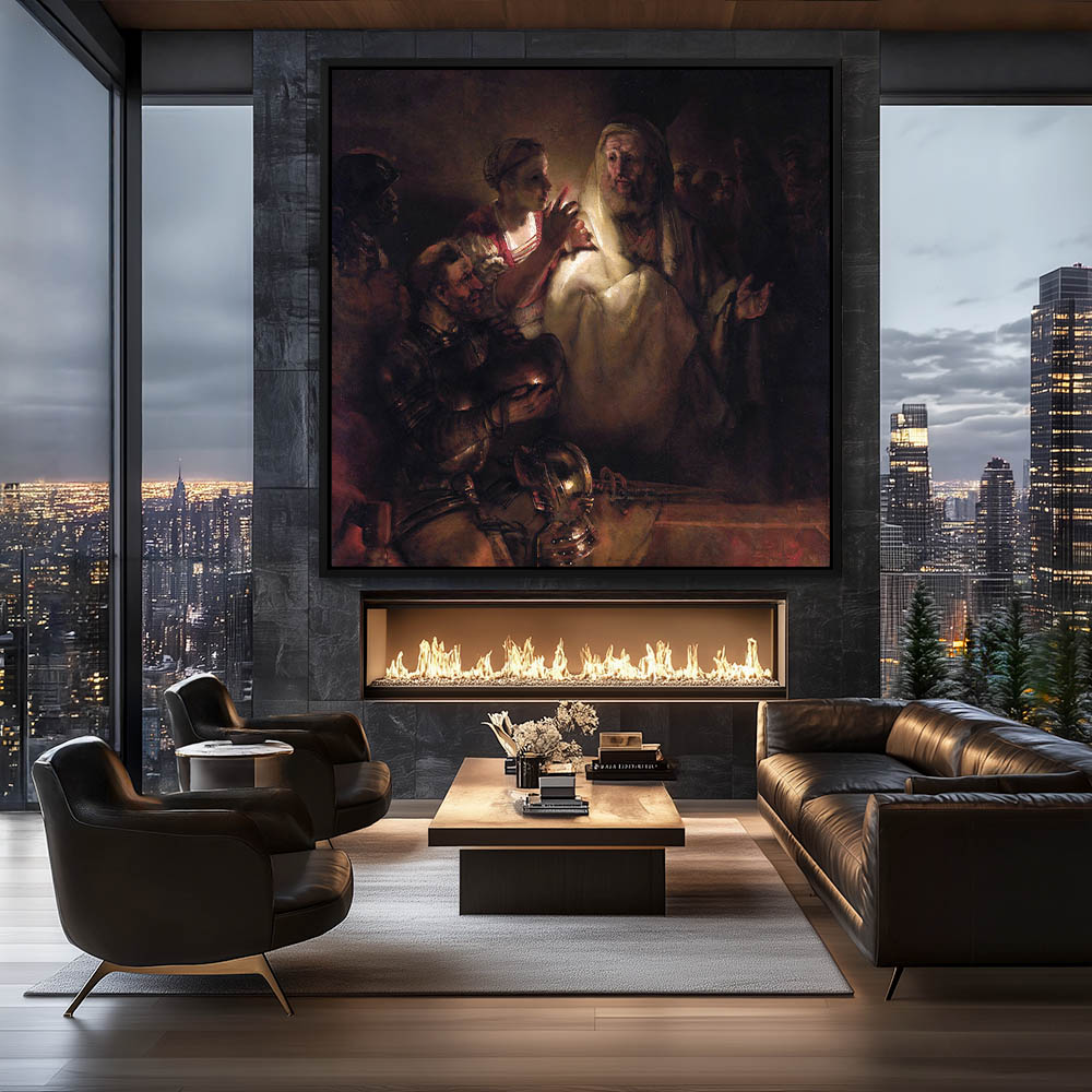 Vintage Religious Painting of Jesus Christ Charging Peter