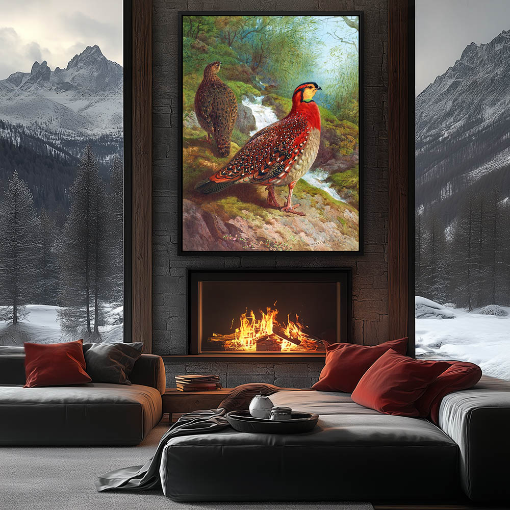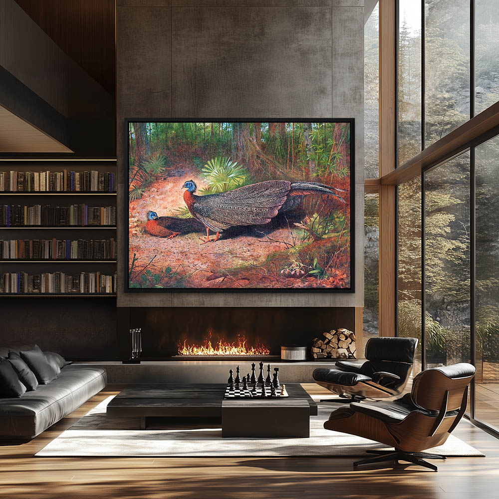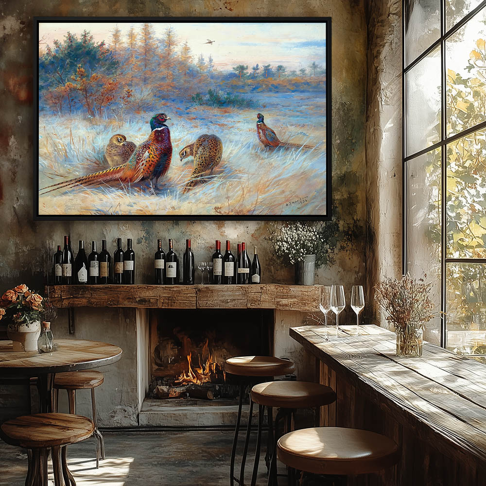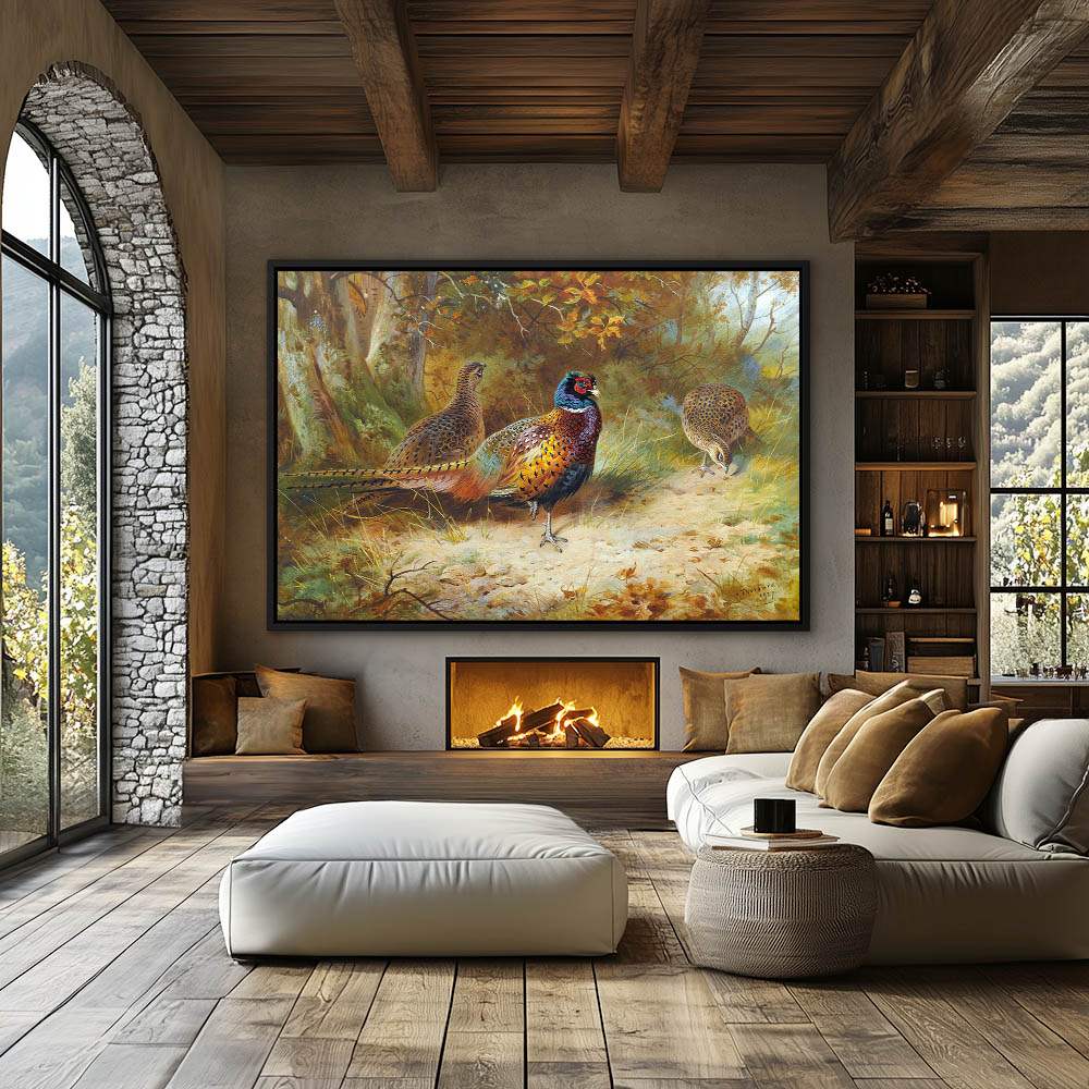 Archibald Thorburn Wall Art Painting of Cock and Hen Pheasant for Home Decor, Canvas Wall Art, Metal Wall Art, Framed Prints, Fine Art Prints, Poster Art, Wall Decor for the Hunting Cabin, Extra Large Framed Canvas Wall Art with Floater Frames