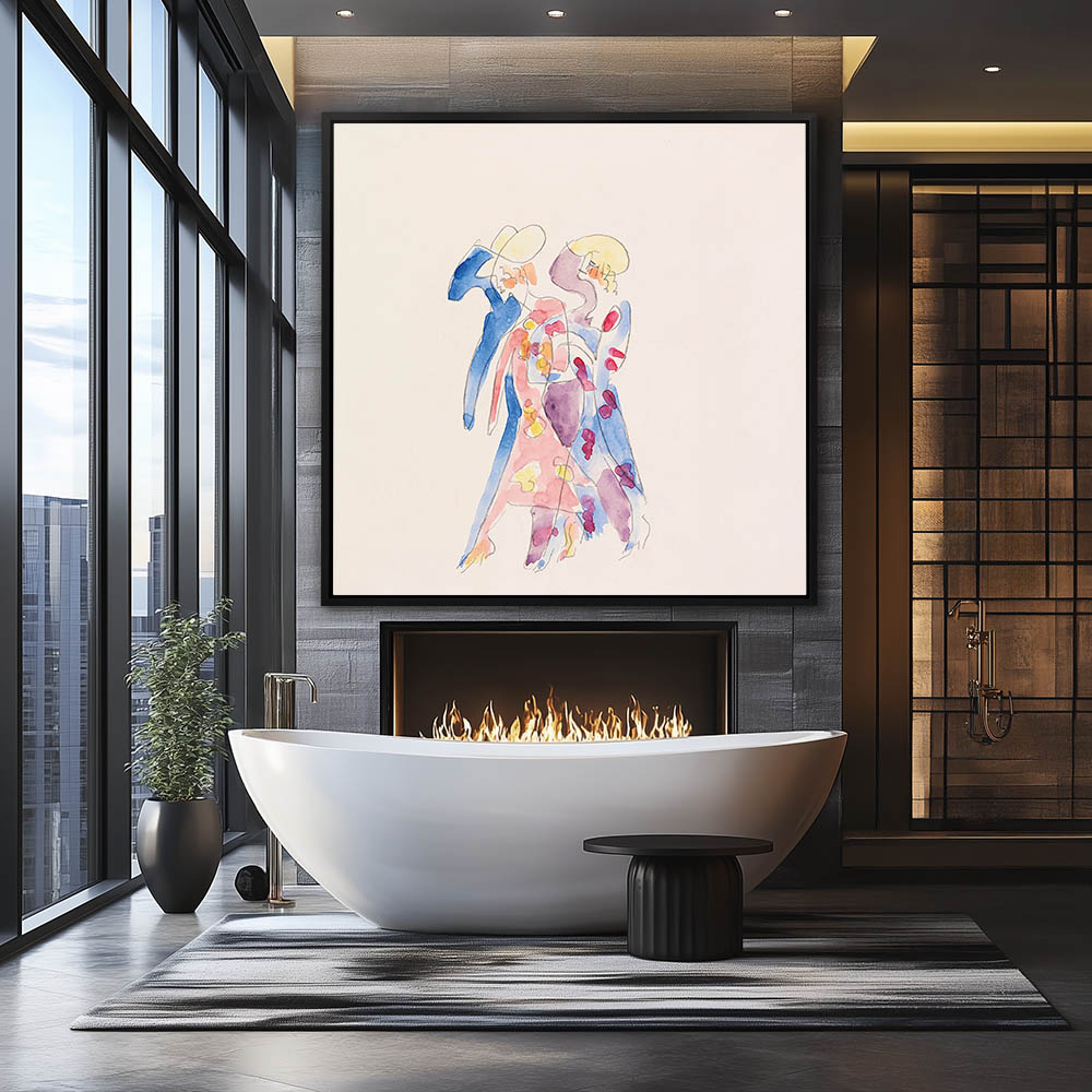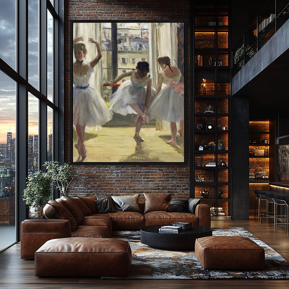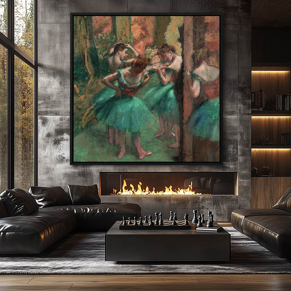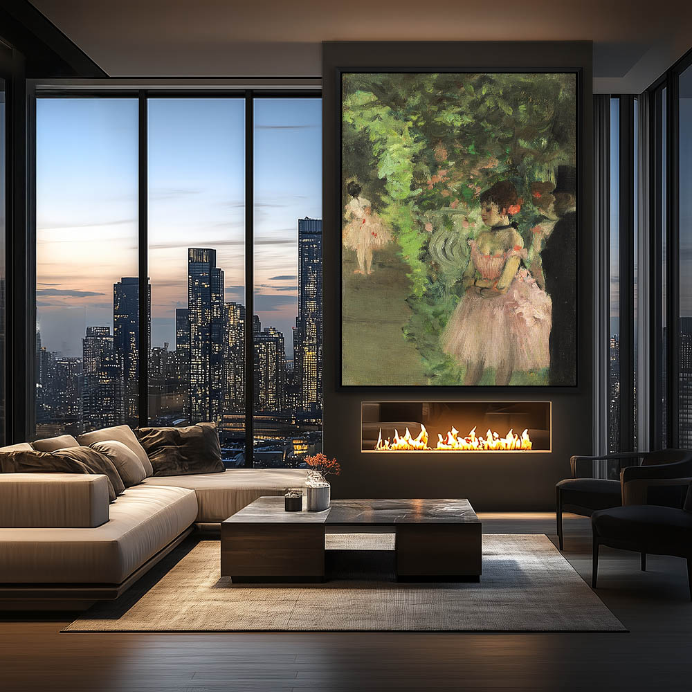 Dancer from behind with one arm raised and the other stretched to the back of her costume