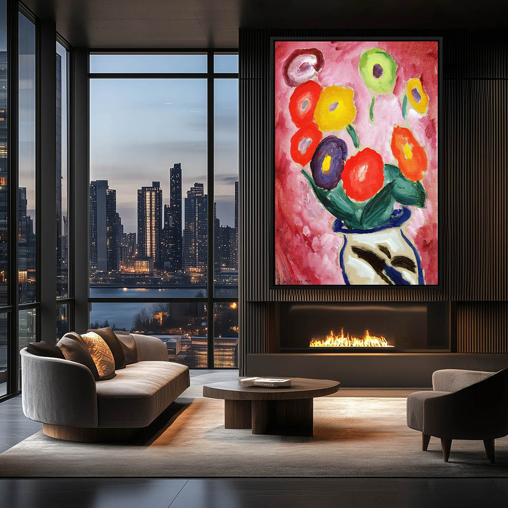 Abstract Still Life Painting with Flowers in Multi Colors