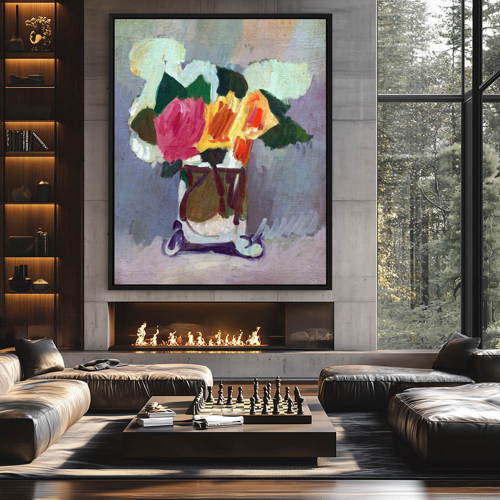 From $31.97Vintage Still Life Painting with Flowers in a Vase and Cats to the Side