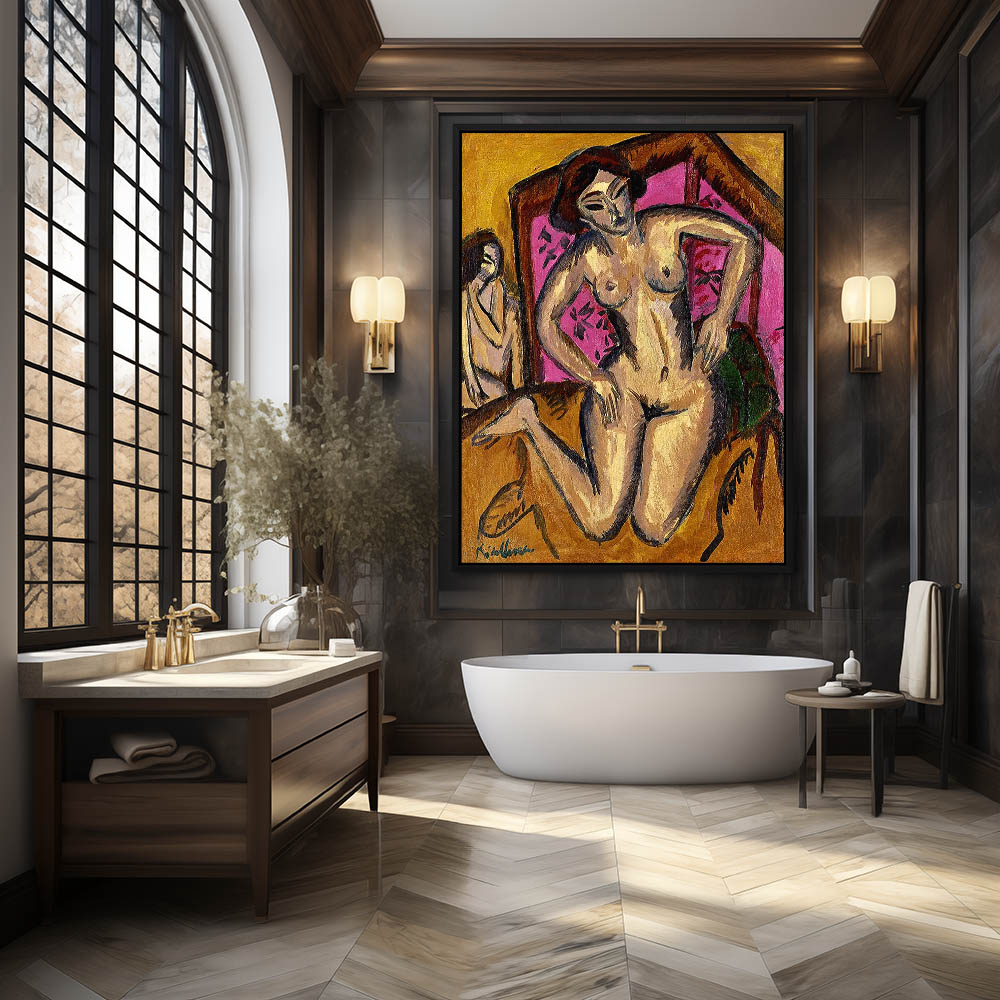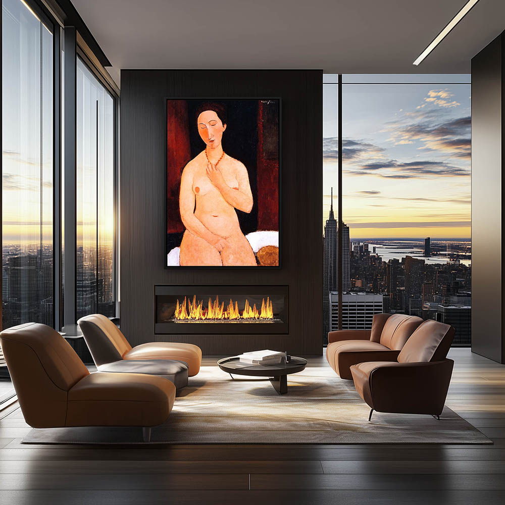 Abstract Figurative Painting of a Nude Woman Wearing a Necklace