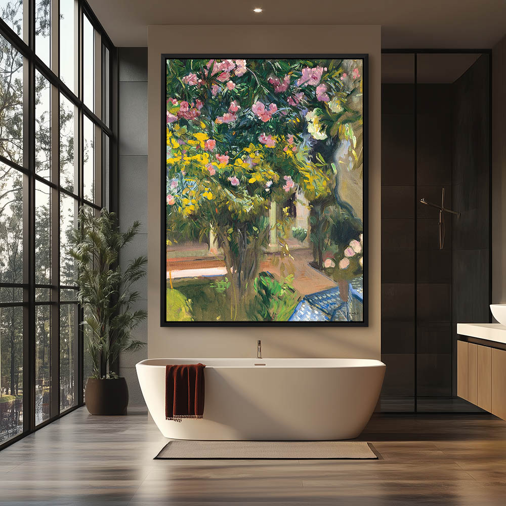 Large oleander bush in the courtyard