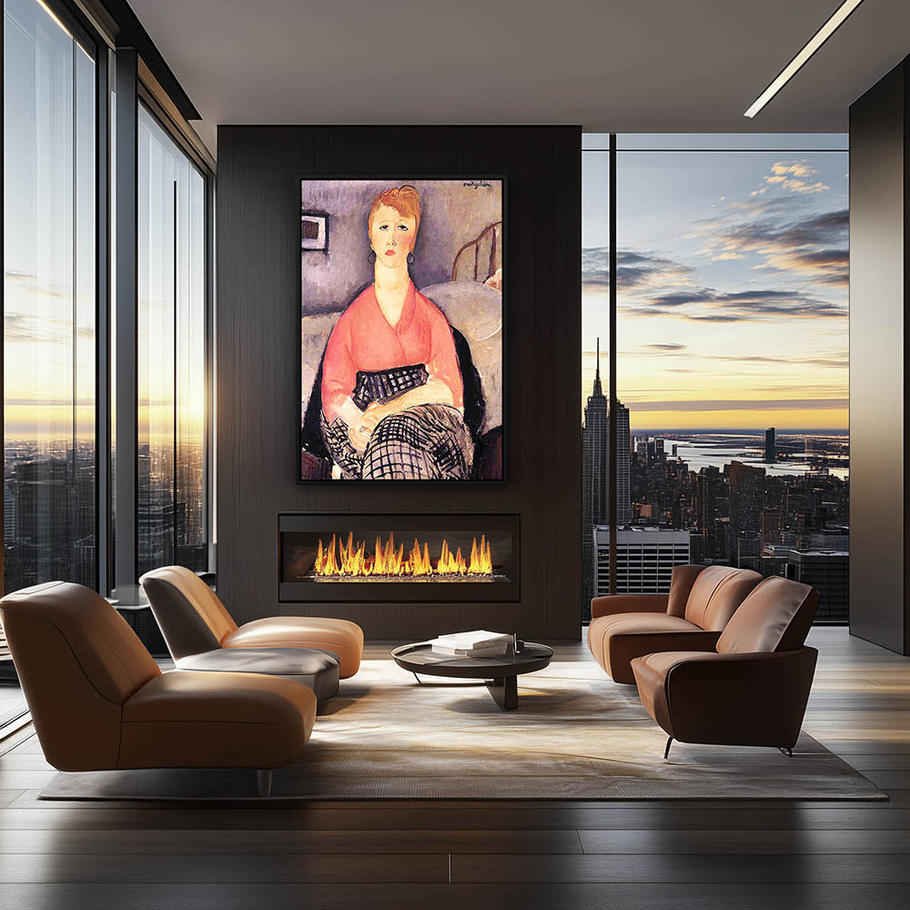 Abstract Figurative Portrait of a Woman Sitting in Front of the Bed
