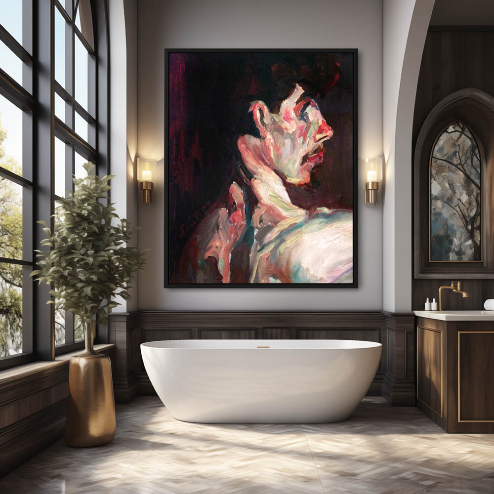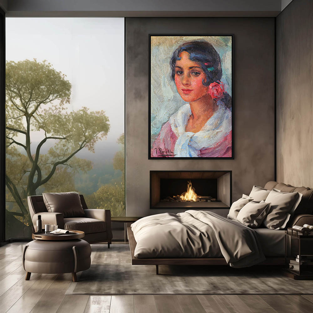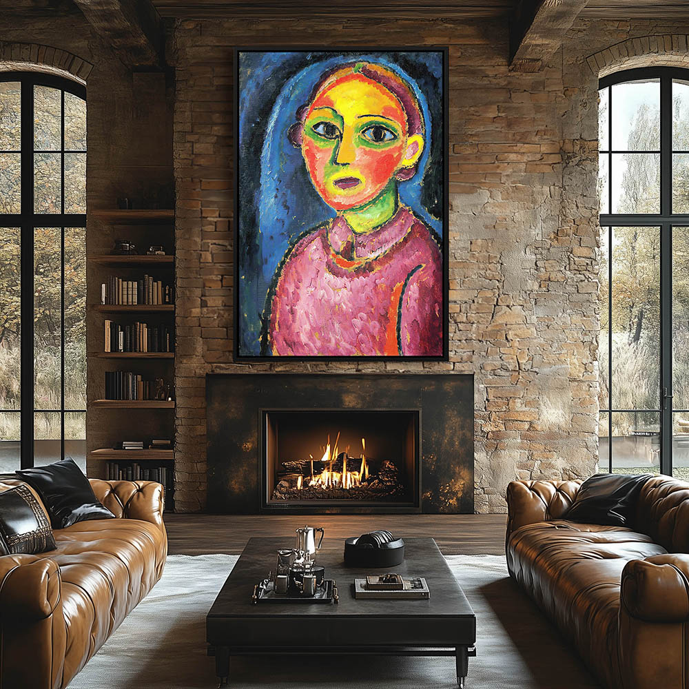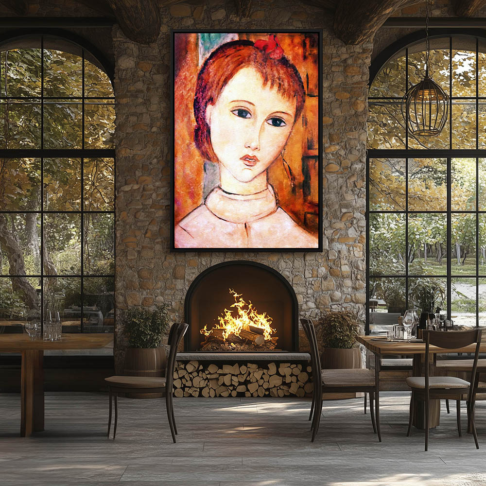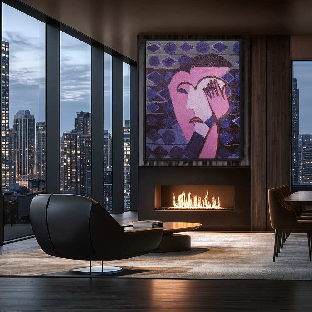 Abstract Figurative Portrait Painting of a Girl in a Reddish Robe