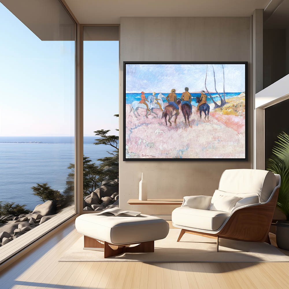 Vintage Beach Landscape with Horses and Riders