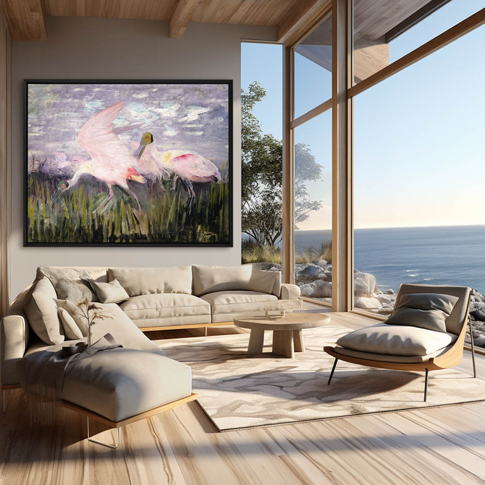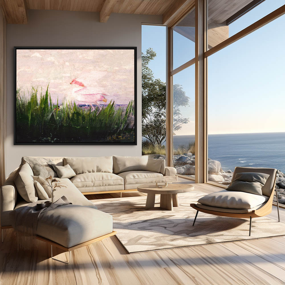 Vintage Bird Painting with a Roseate Spoonbill
