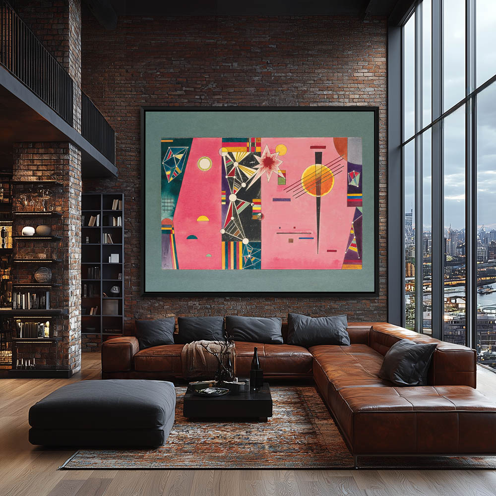 Abstract geometric composition on pink and purple planes