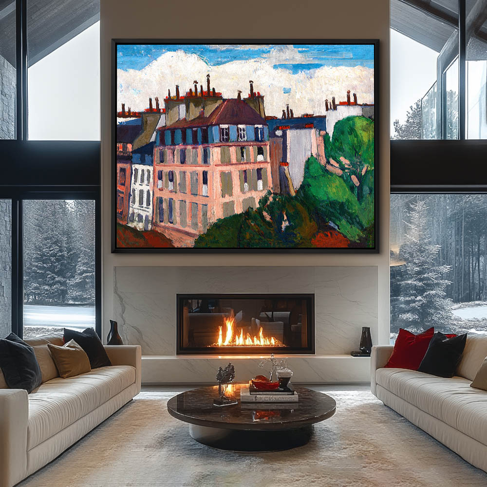 Cityscape with trees and clouds