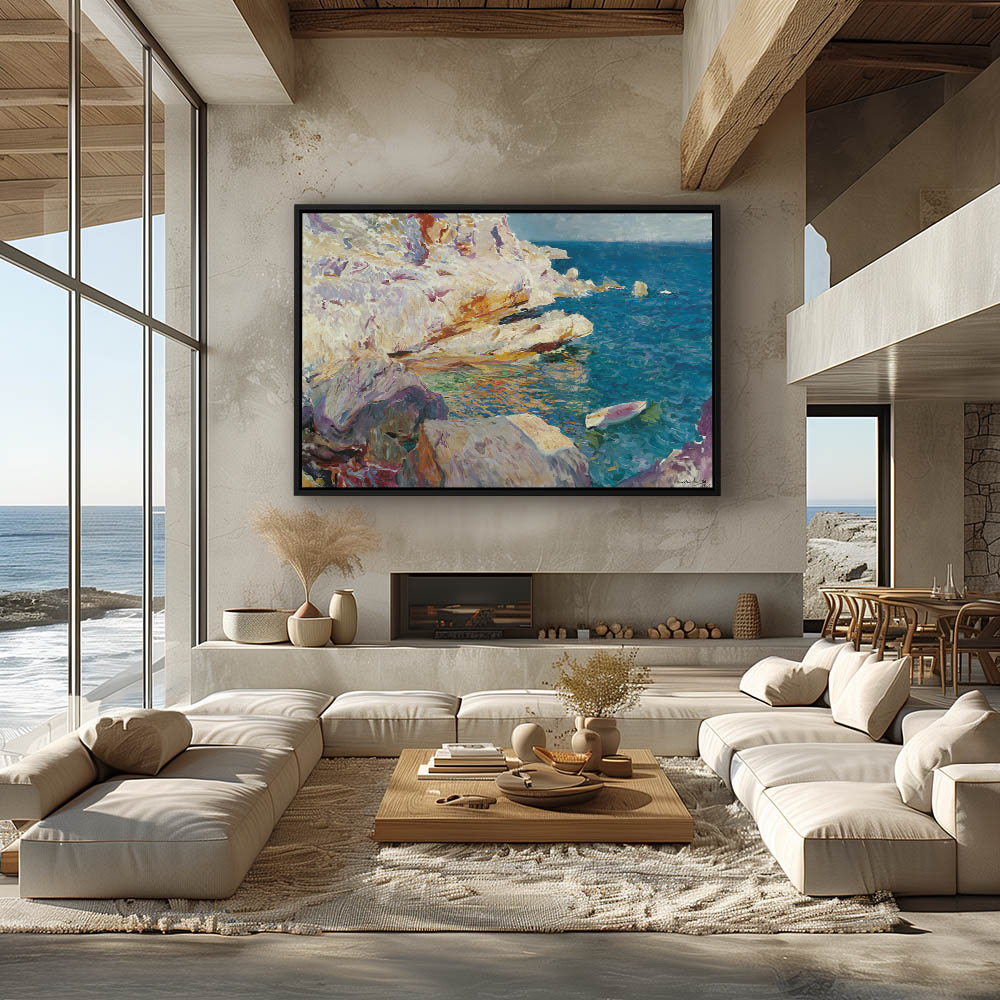Rocky shoreline with a boat in the water