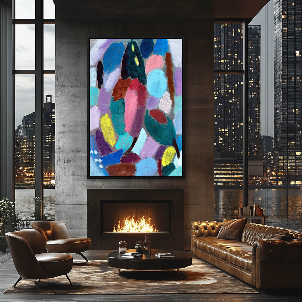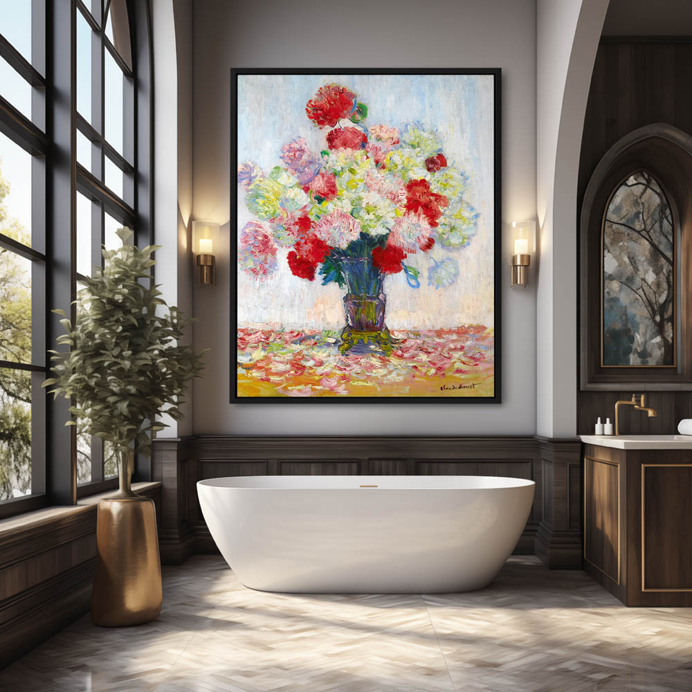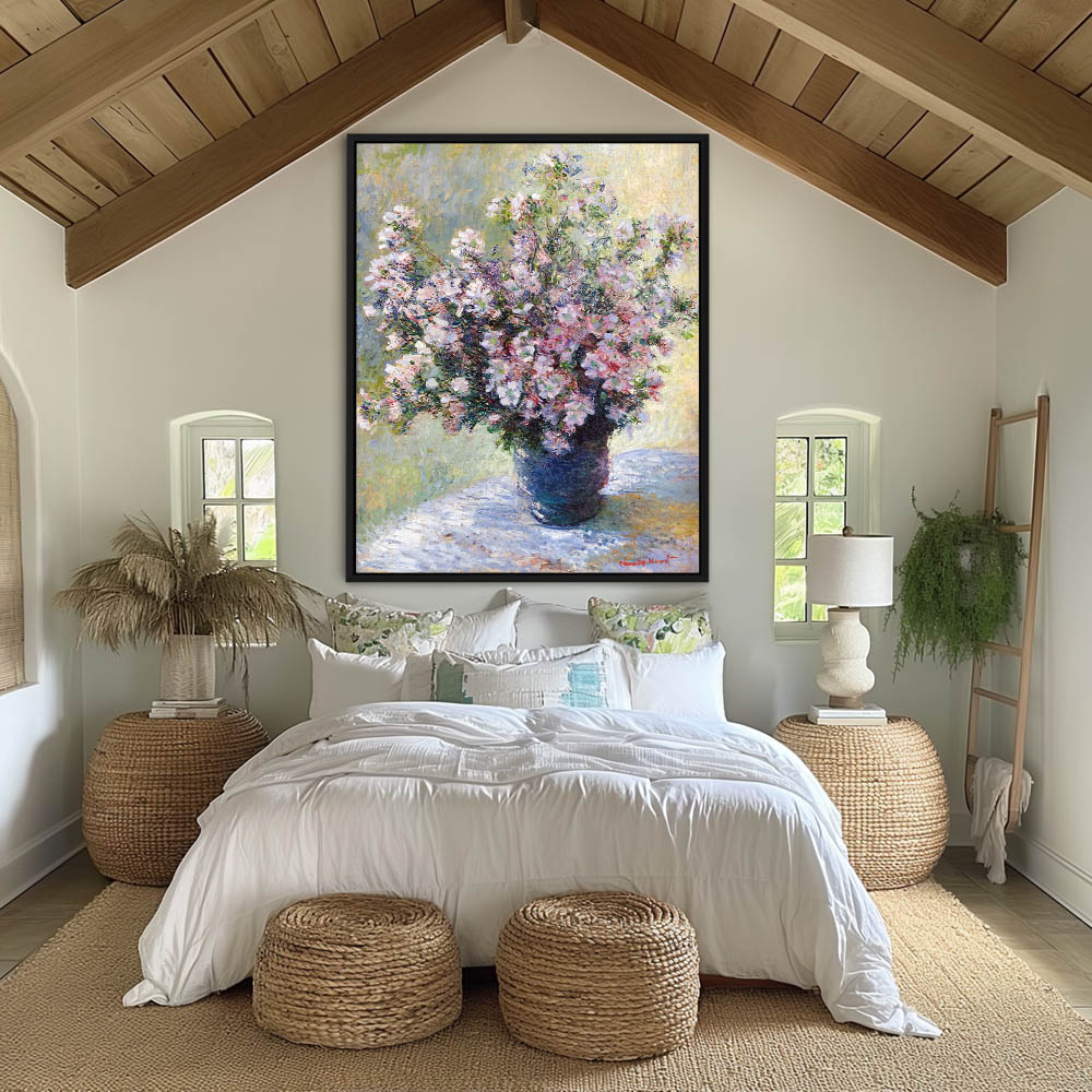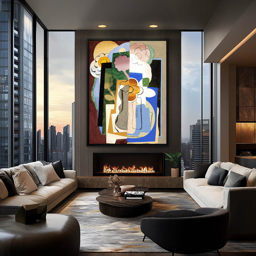 Vintage Still Life Painting with Flowers in a Vase on a Table