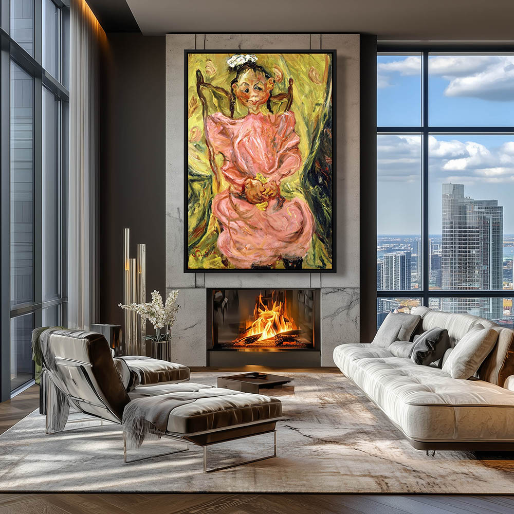 Abstract portrait of a little girl in a pink dress and white hairbow