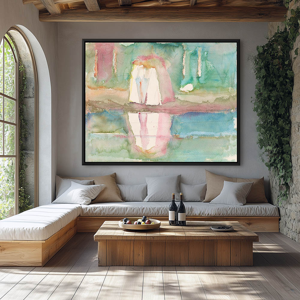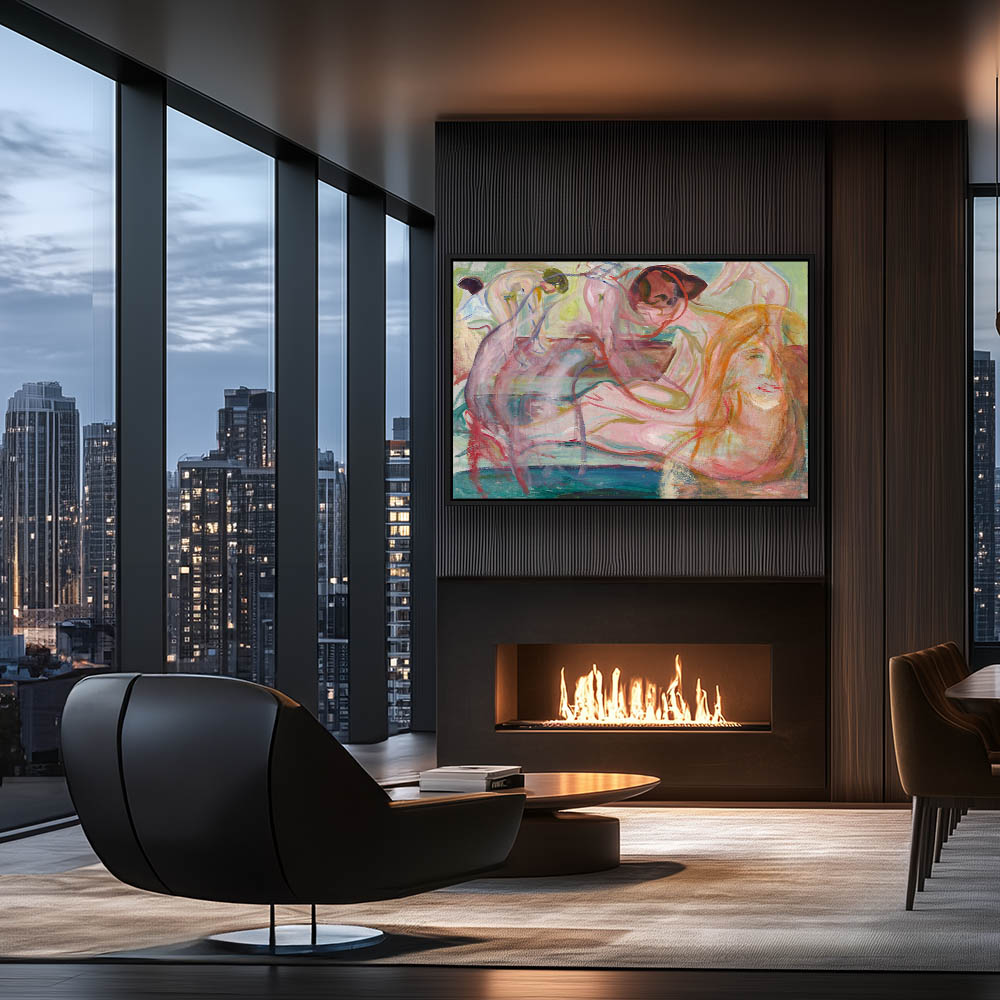 Vintage Abstract Seascape Painting with Three Women and One is Feeding a Baby