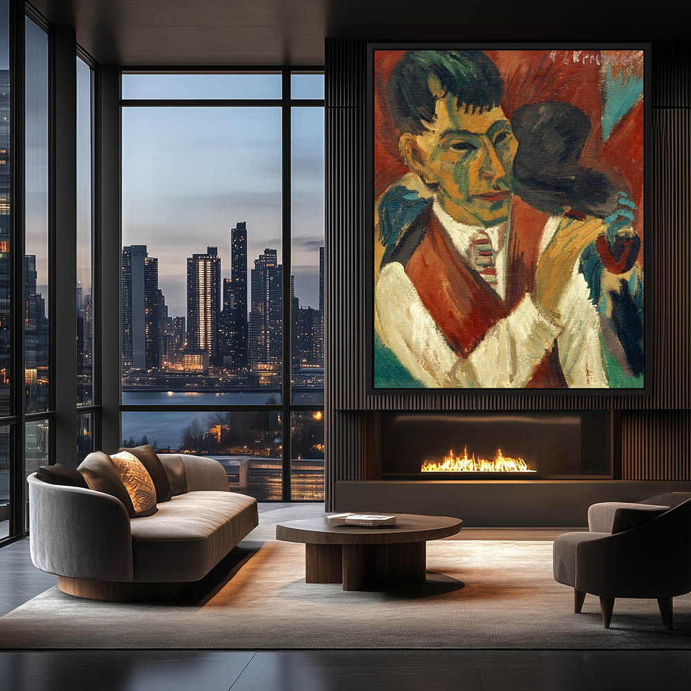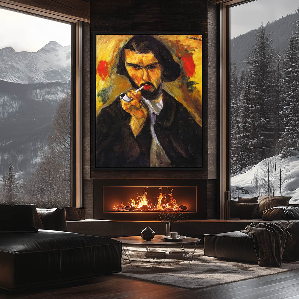 Print of a man smoking a pipe and a woman with her face turned into his neck