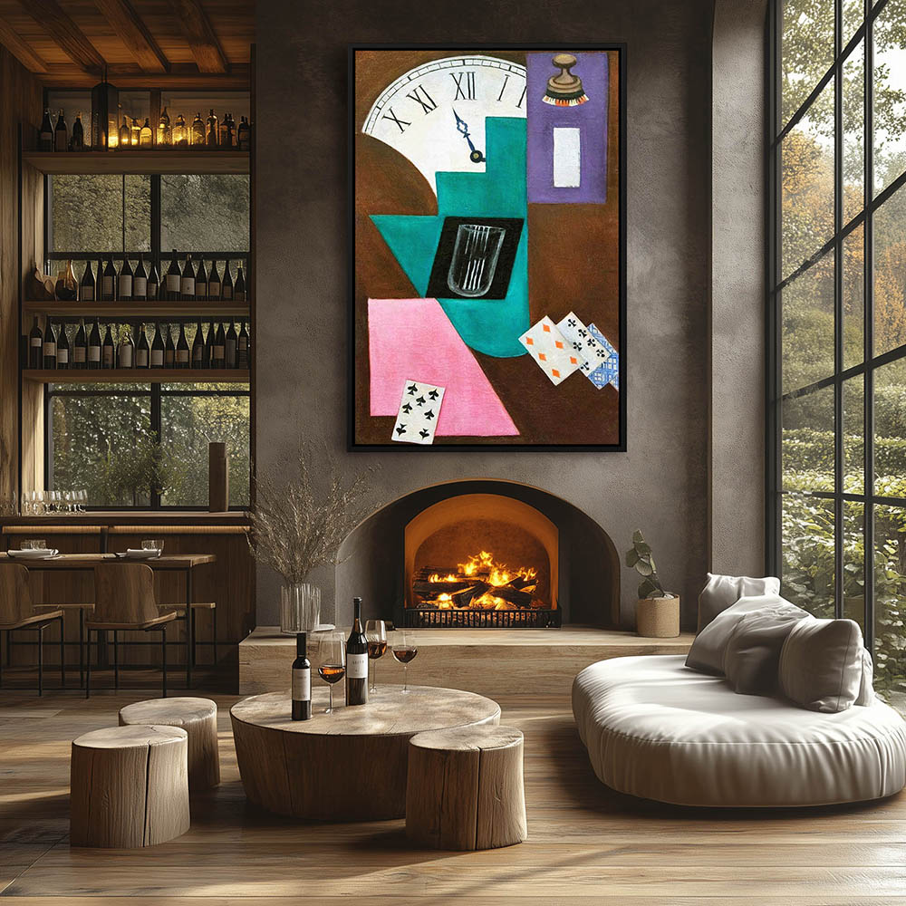 Vintage Cubism Painting with Watches and Cards