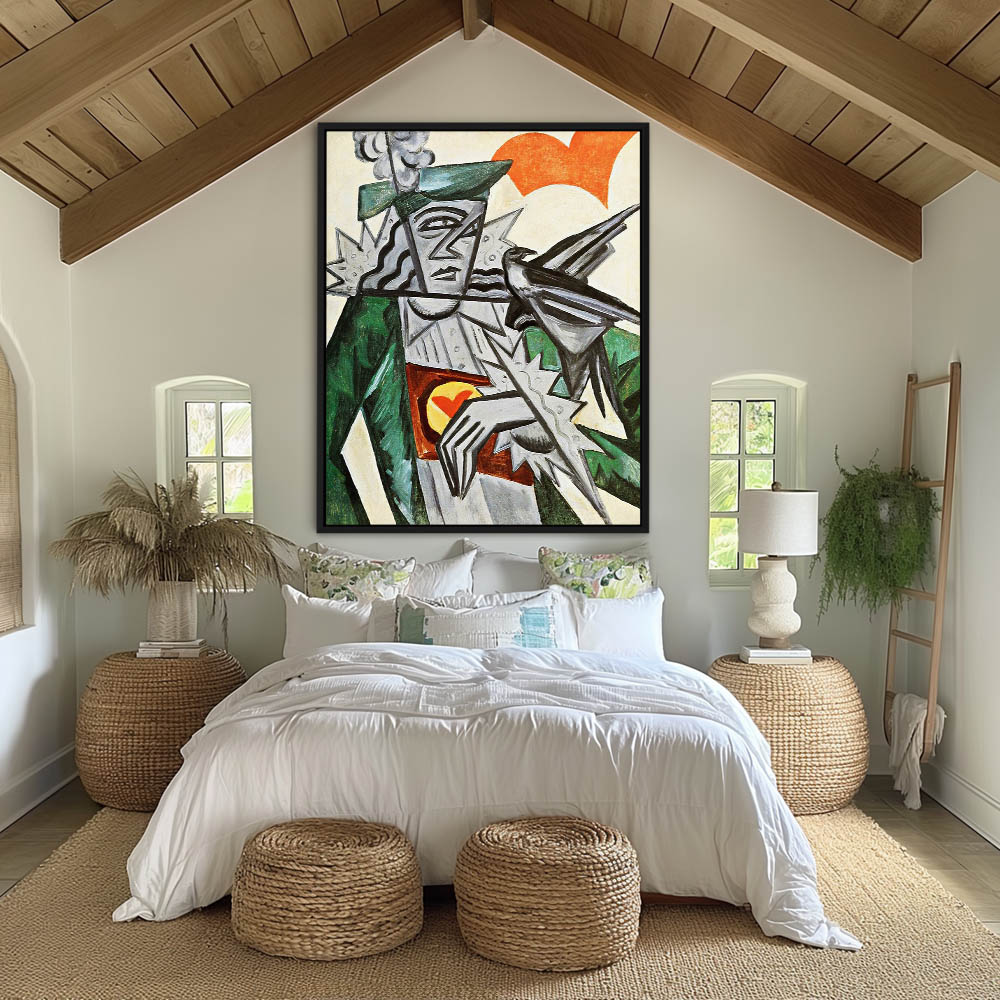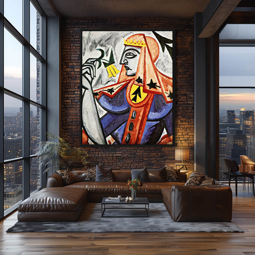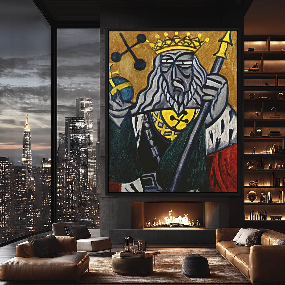 Vintage Cubism Painting of the King of Hearts