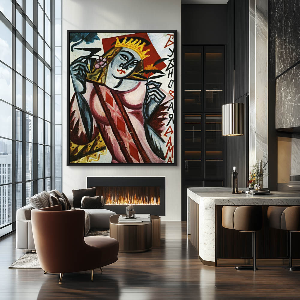 Vintage Cubism Painting of the Queen of Diamonds
