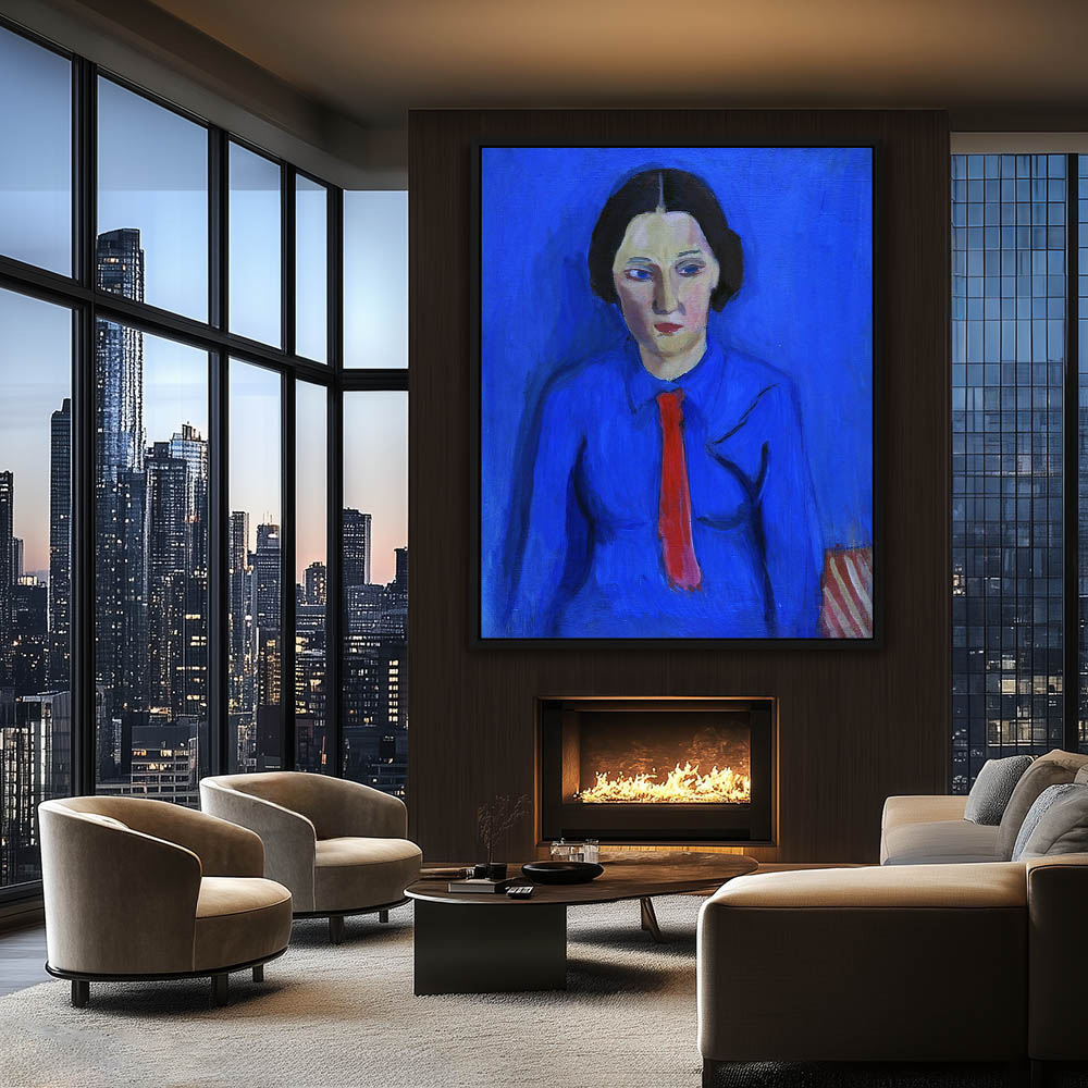 Vintage Figurative Portrait Painting of a Woman in a Red Tye
