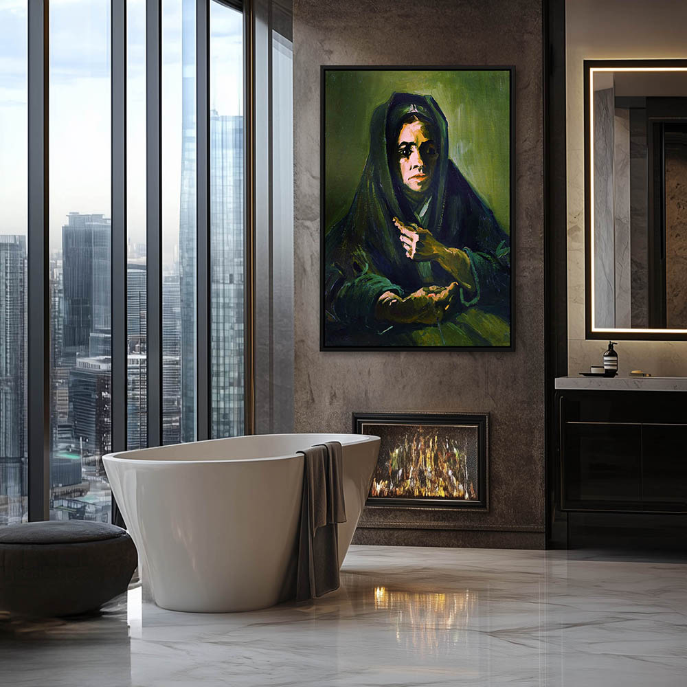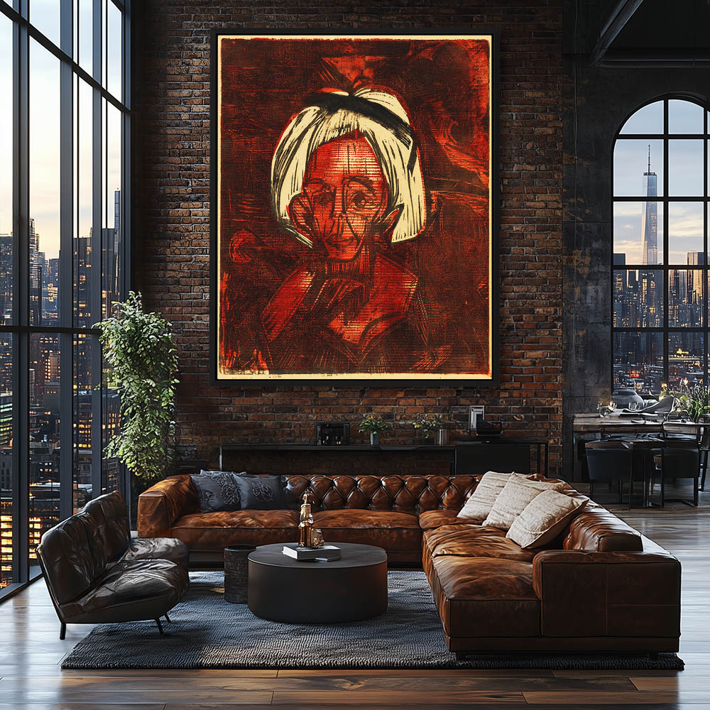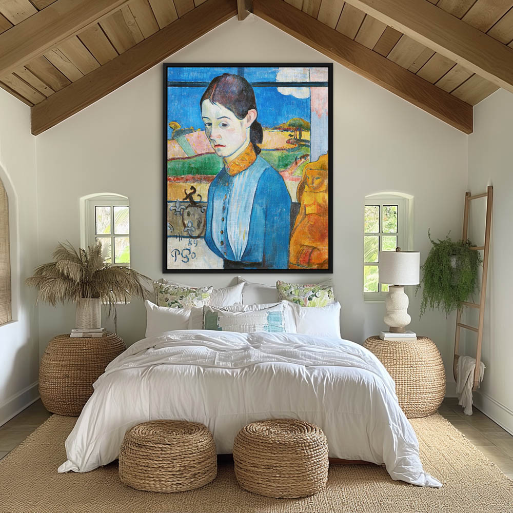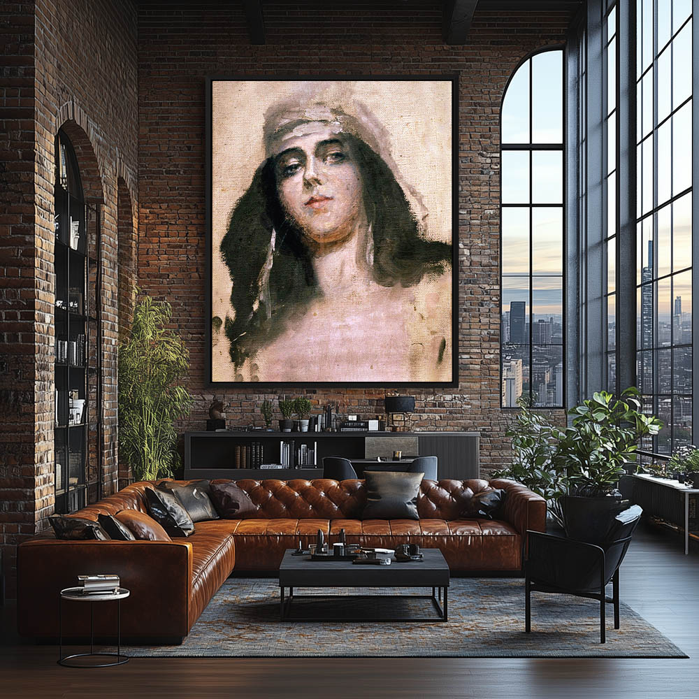 Vintage Abstract Portrait Painting of a Young Breton Girl