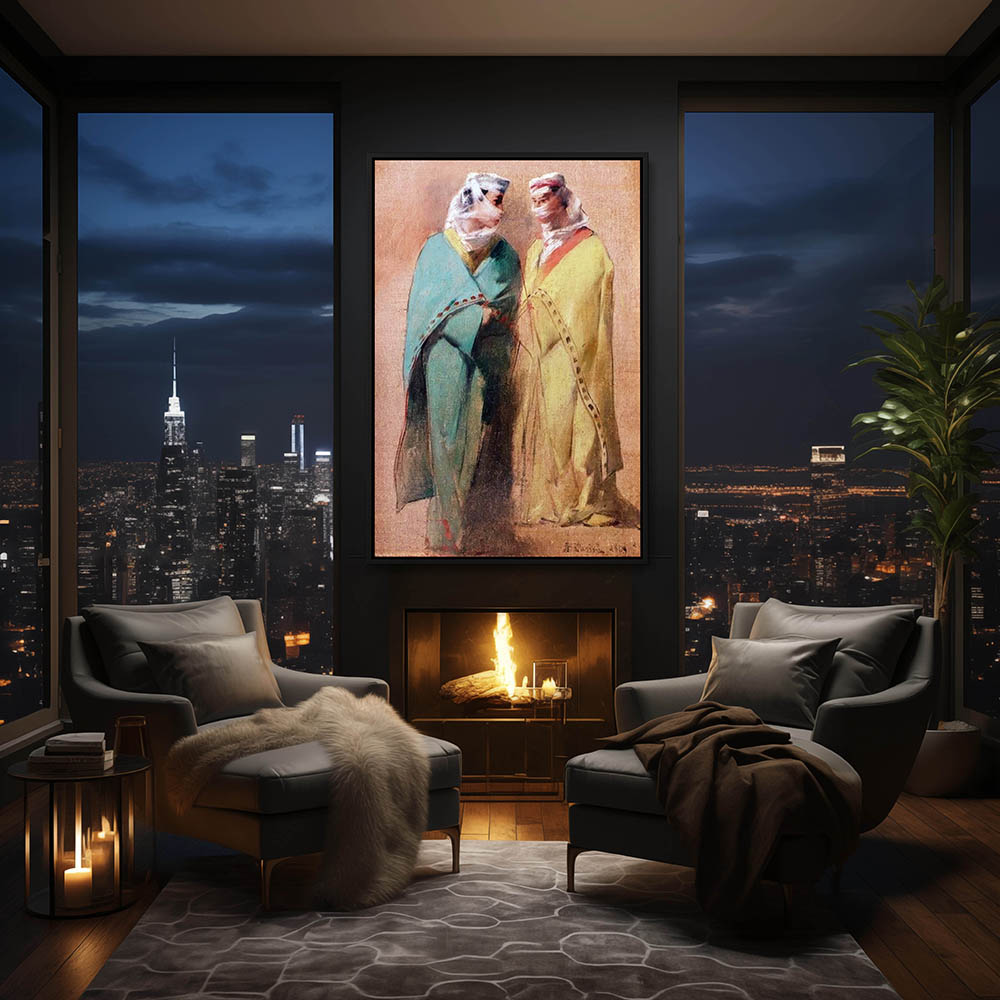 Figurative Portrait Painting of Two Females in Oriental Dress