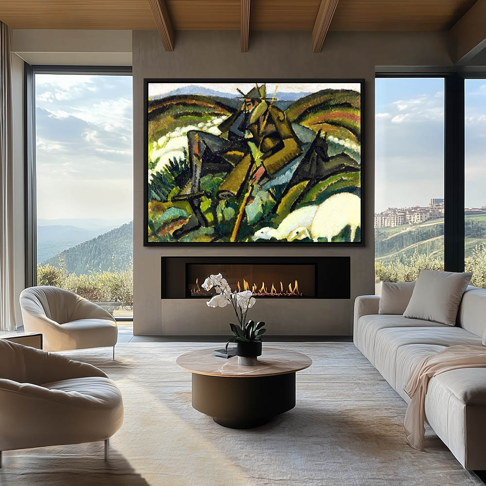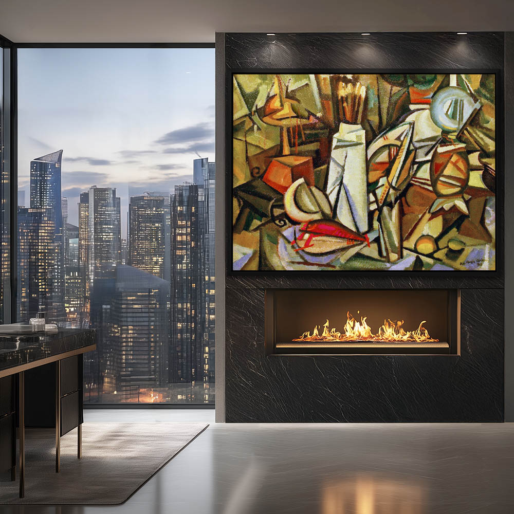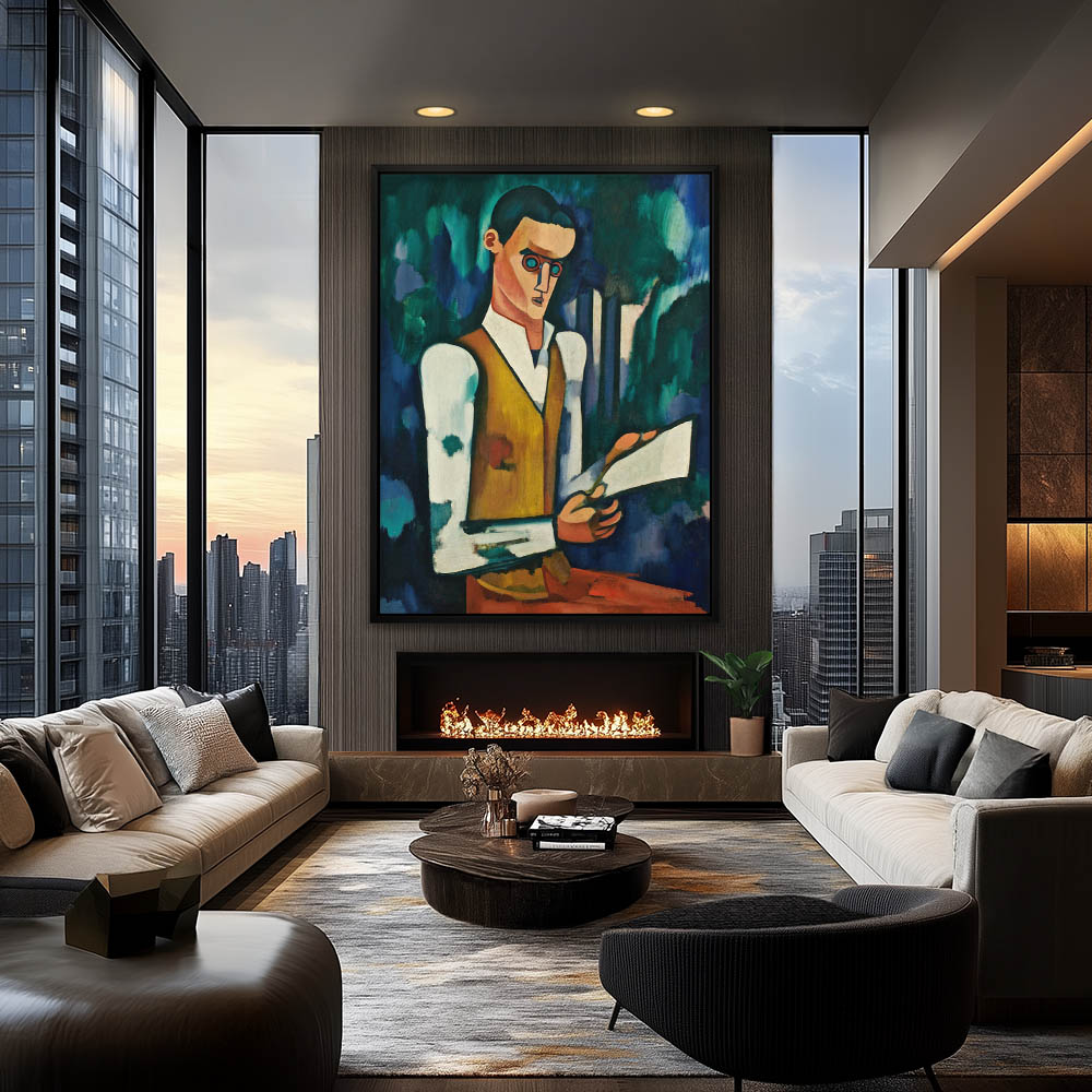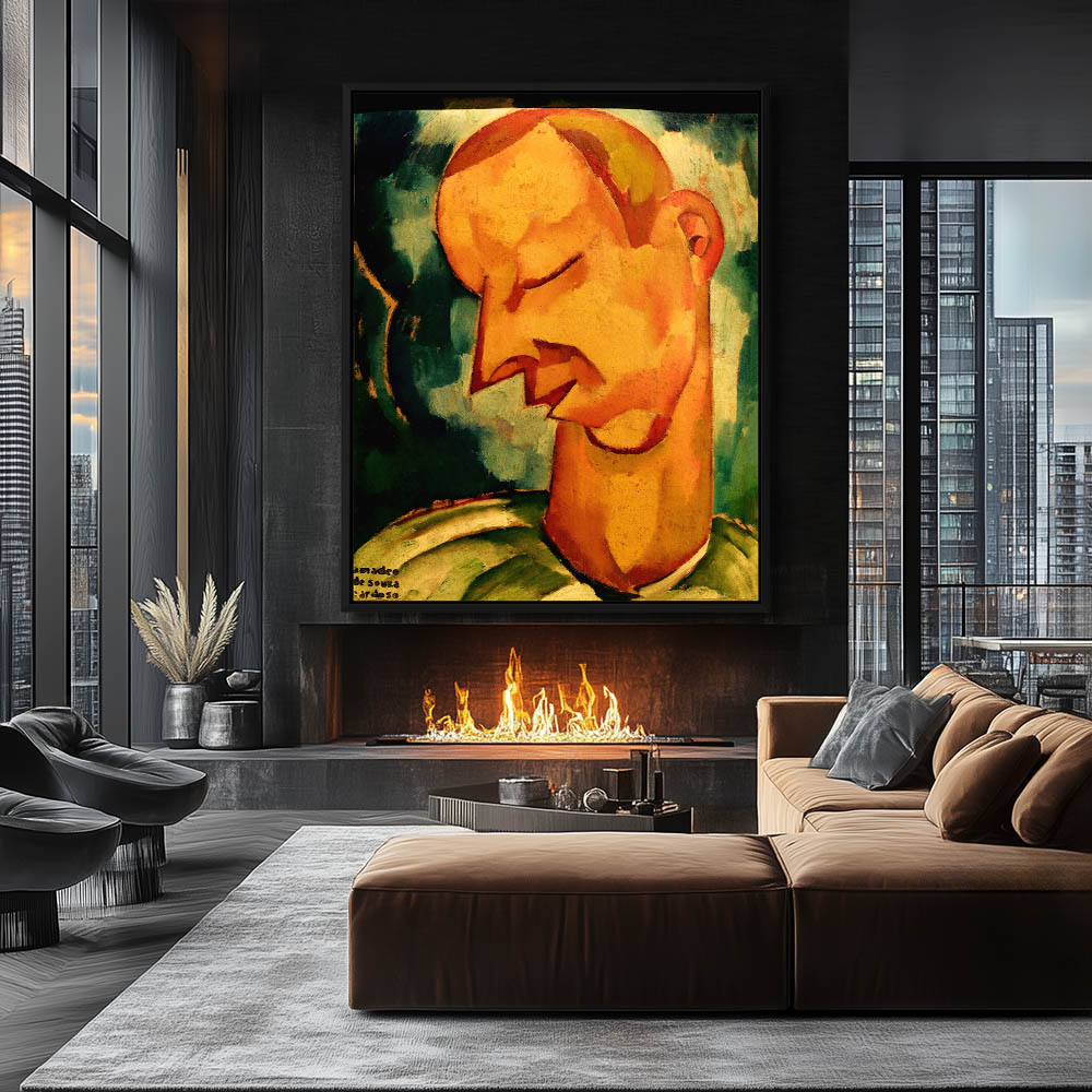 Cubist depiction of a figure smoking