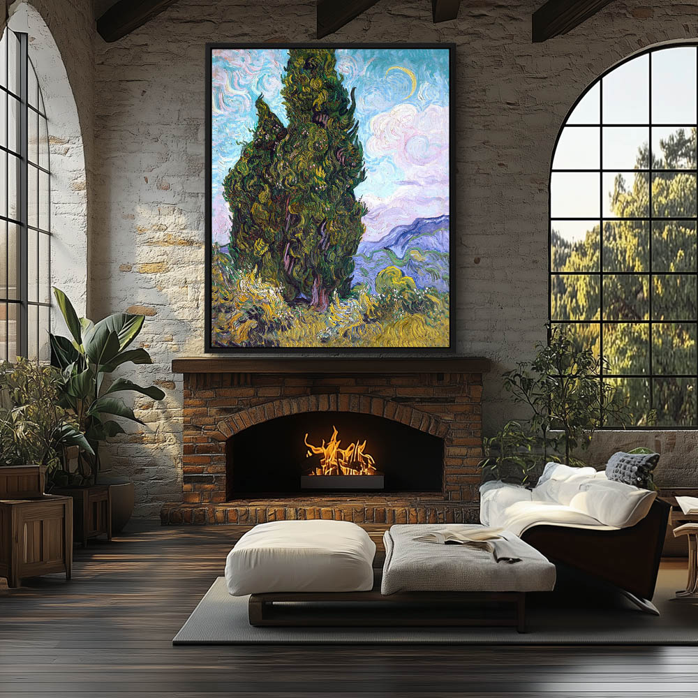 Abstract Impressionist Landscape with Cypress and a Stary Sky