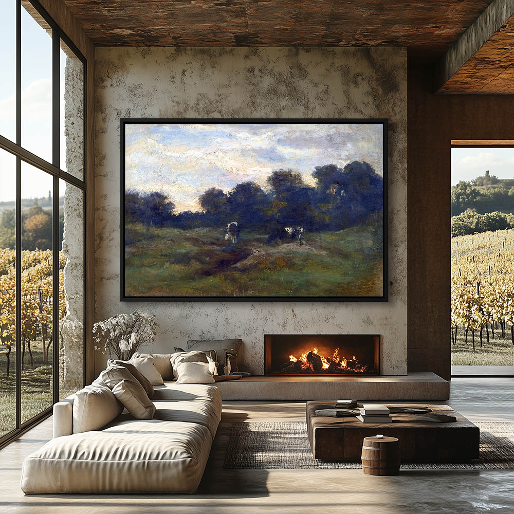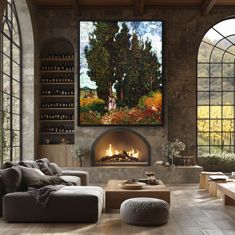 Impressionist Abstract Landscape Painting with Cypress Trees