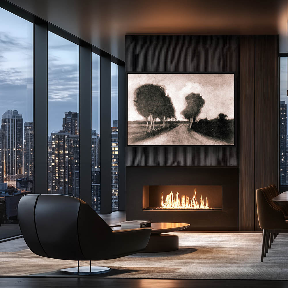 Impressionist Landscape Painting of a Lane Lined with Trees