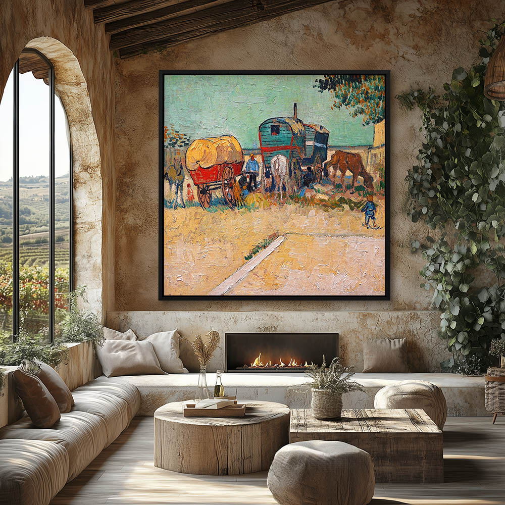 People with Horses in a Caravan