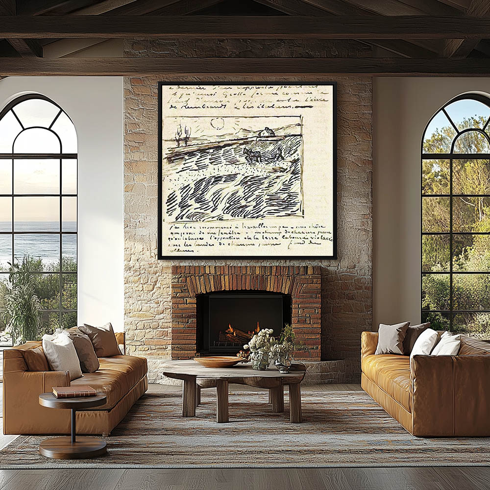 Impressionist Abstract Landscape with a Figure Plowing the Field