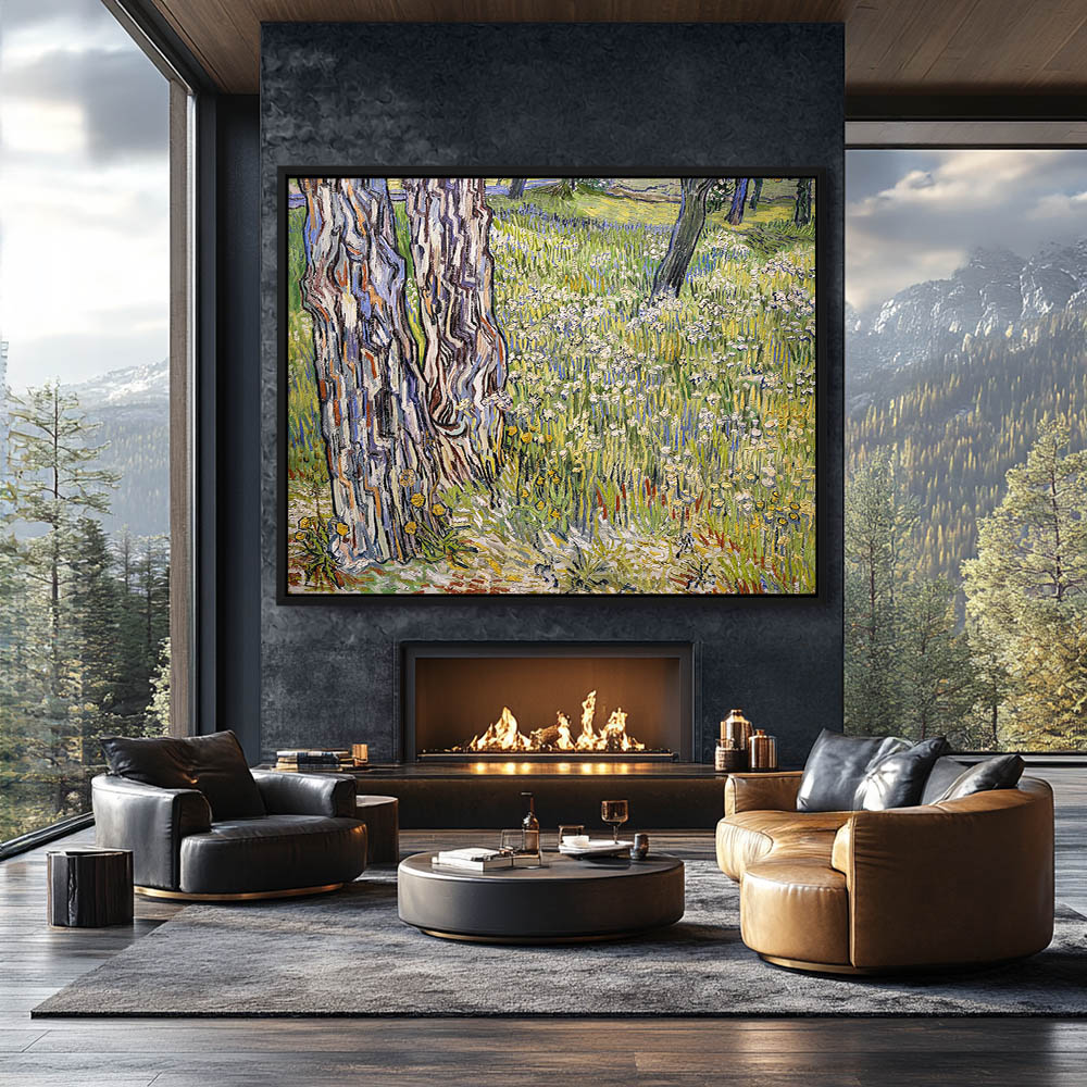 Impressionist Abstract Landscape Painting with Trees and Wild Flowers