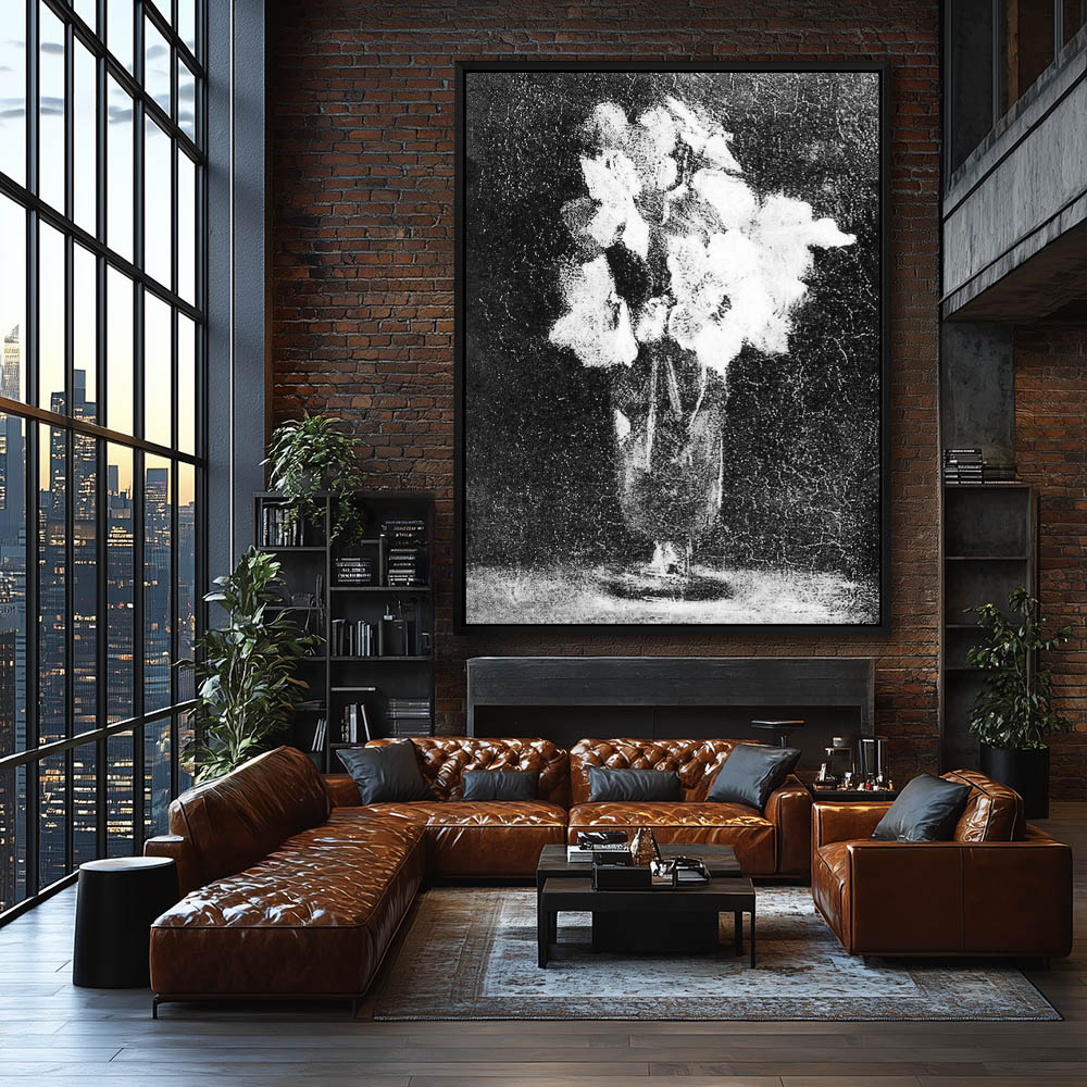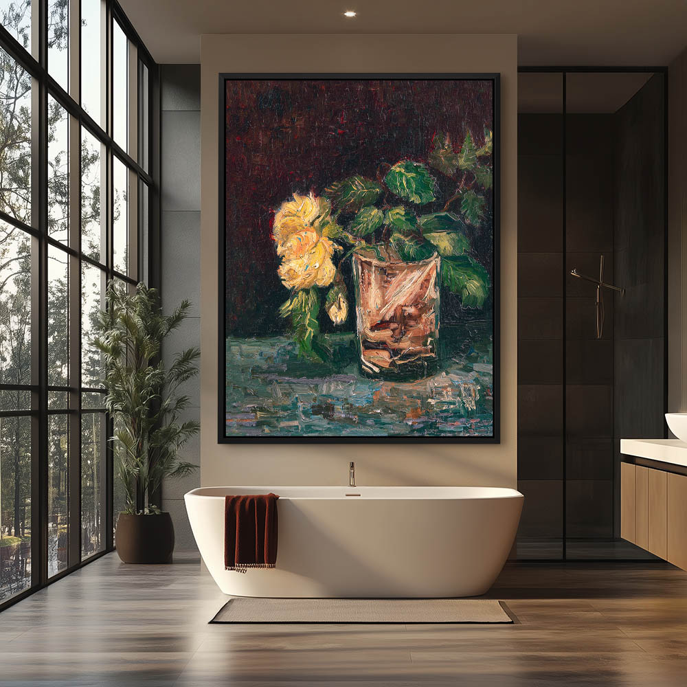 Impressionist Abstract Landscape Painting with Flowers and Butterflys
