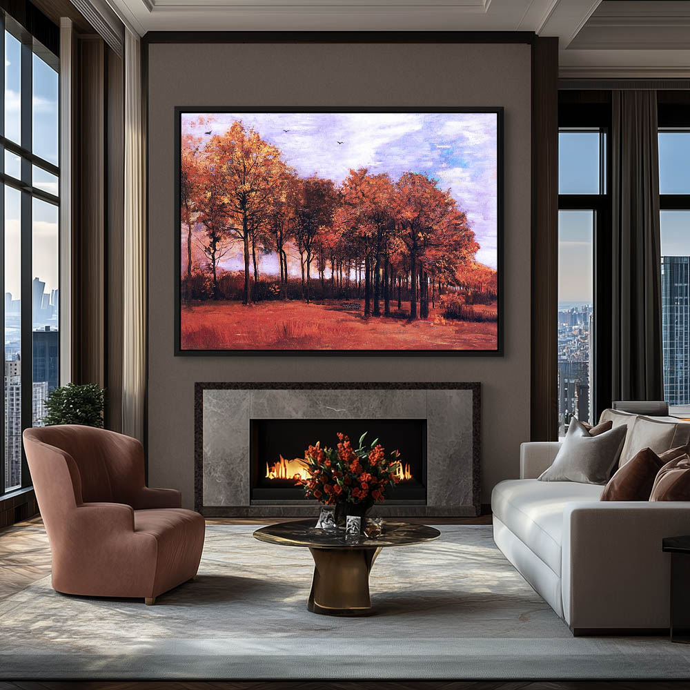 Impressionist Landscape Painting of Four Trees in Autumn